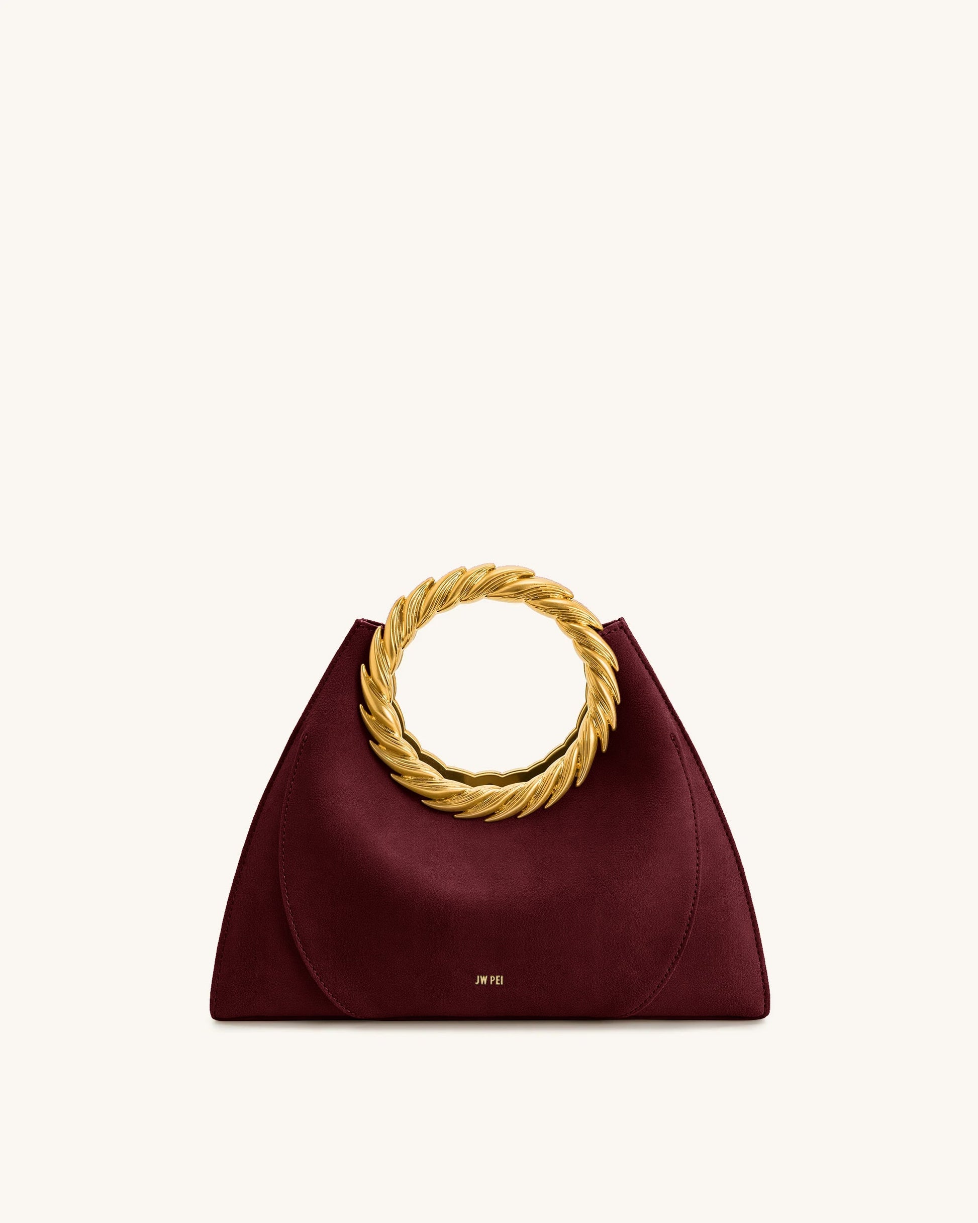 Amiya 葉形提手仿麂皮雕塑包 - 梅洛酒紅