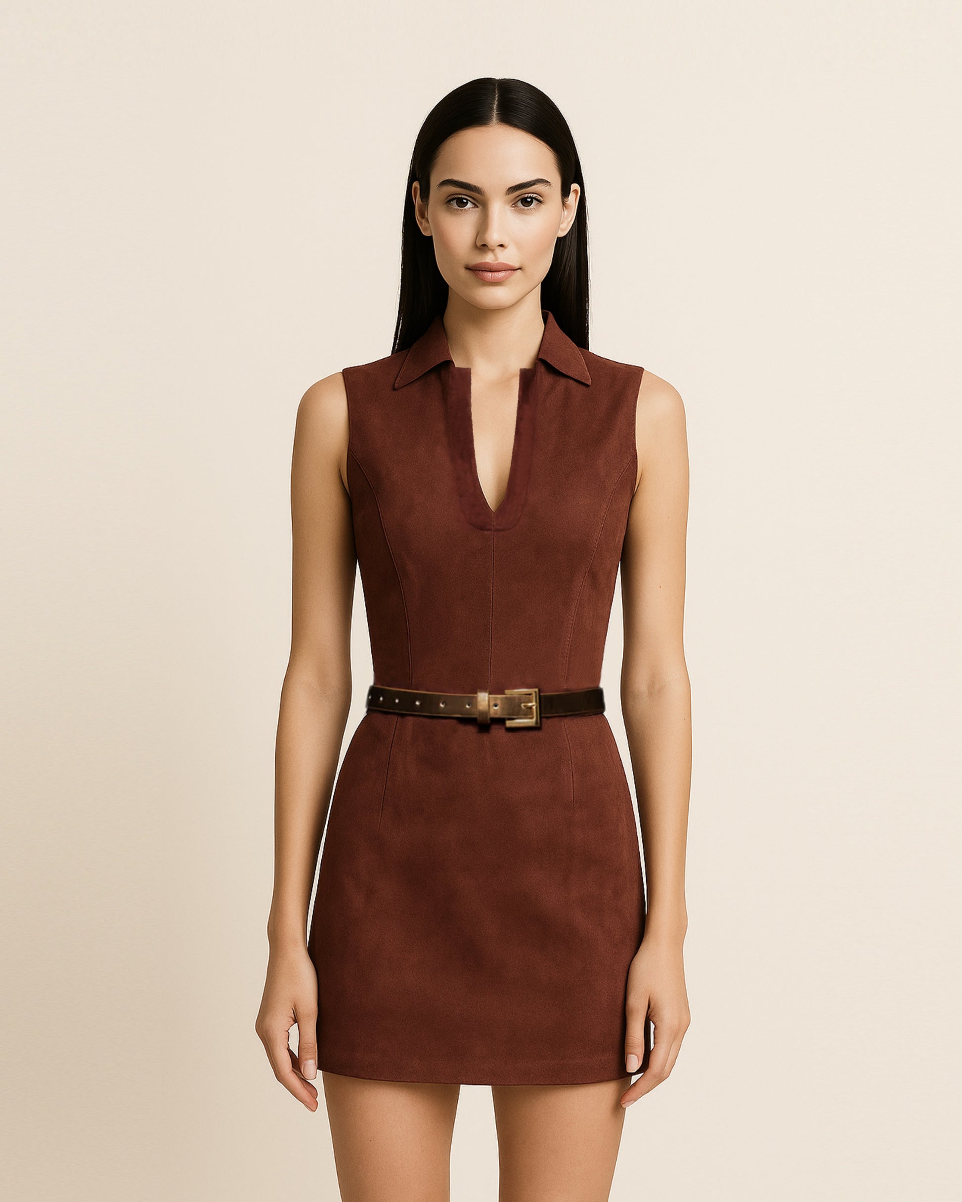Ariana 無袖仿麂皮迷你裙-酒紅色