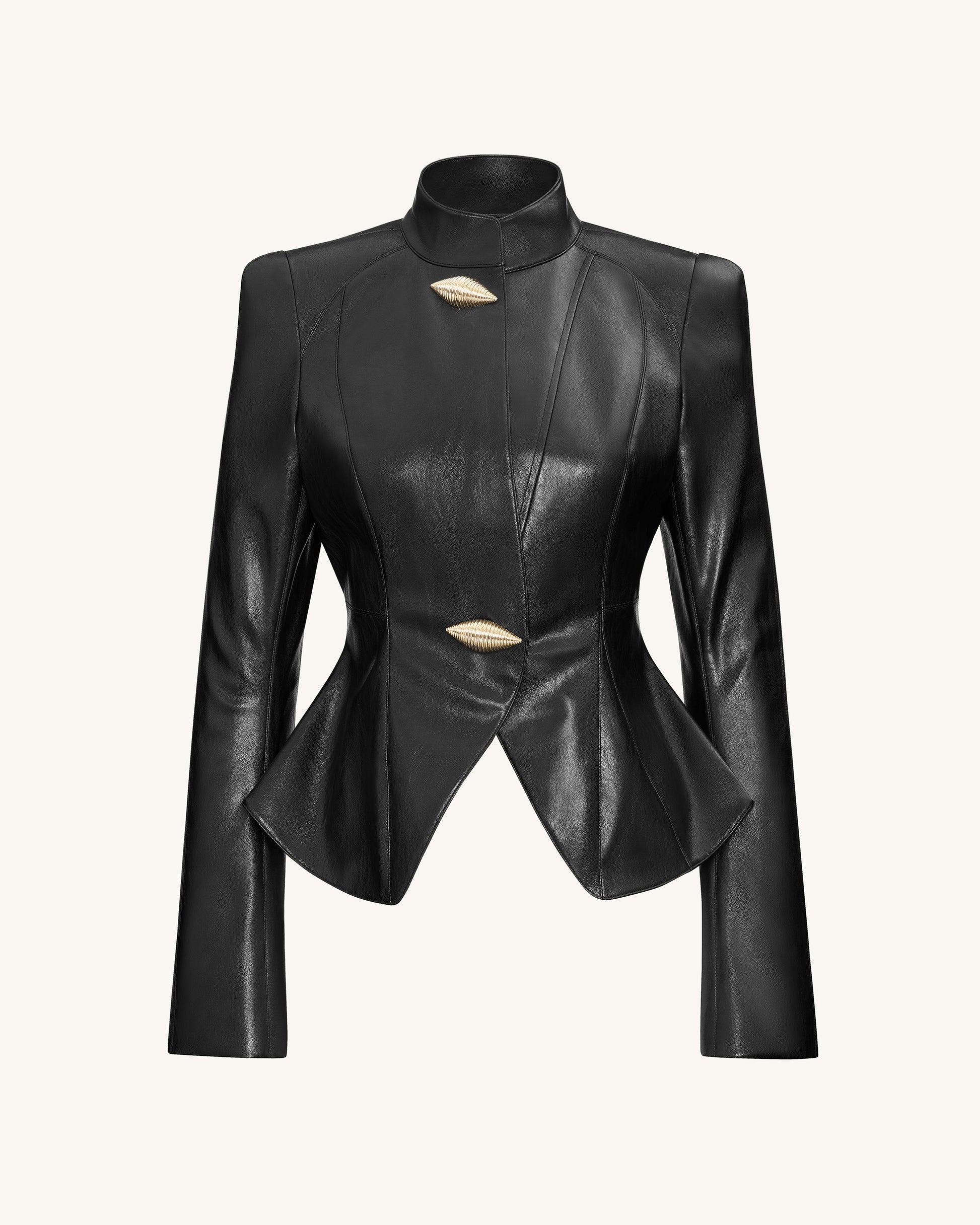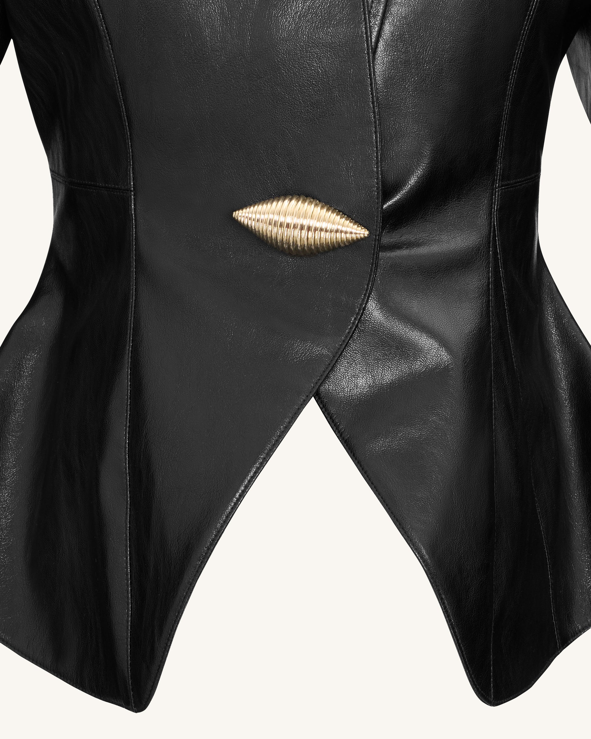 秋季金屬貝殼感PU皮夾克 - 黑色
