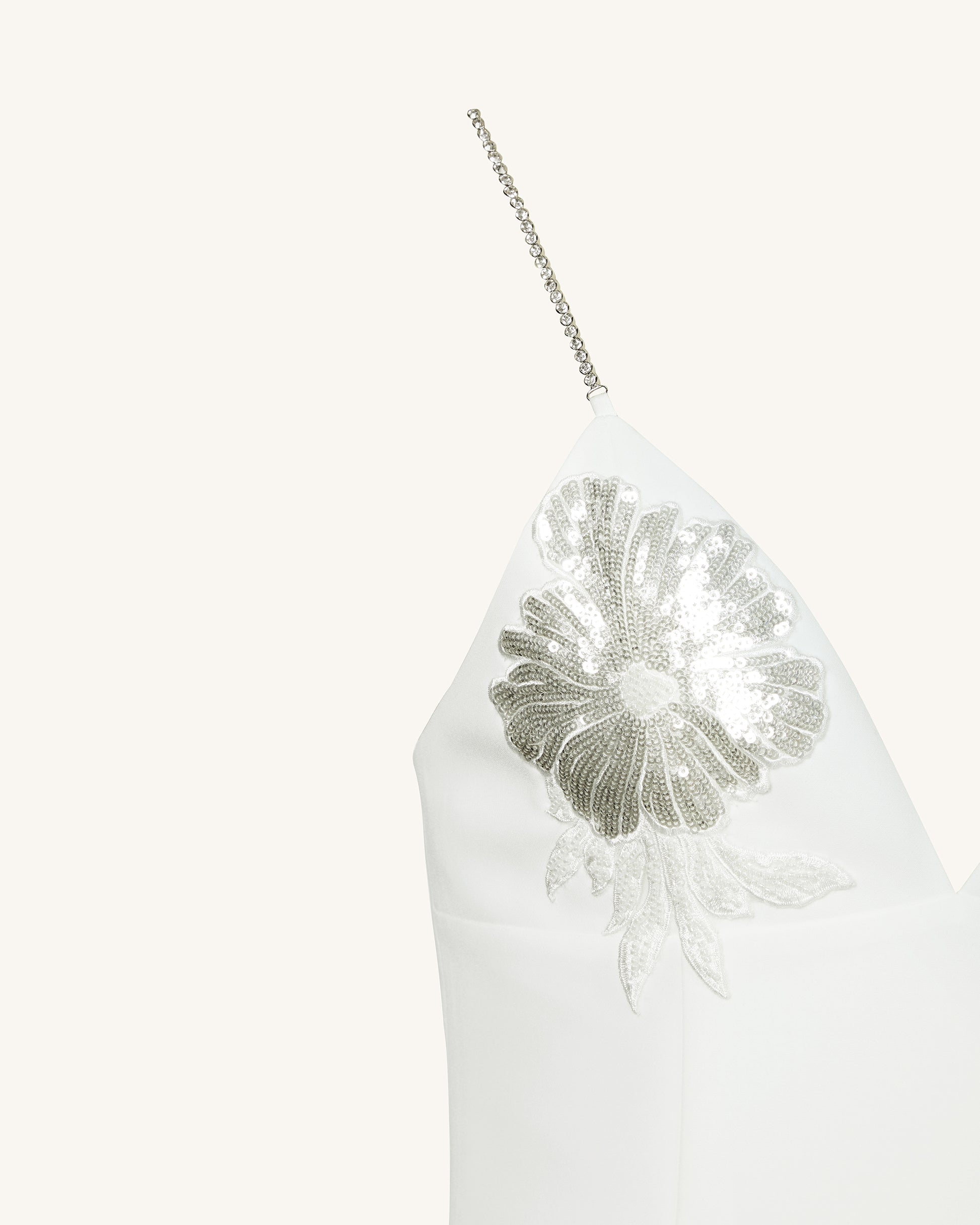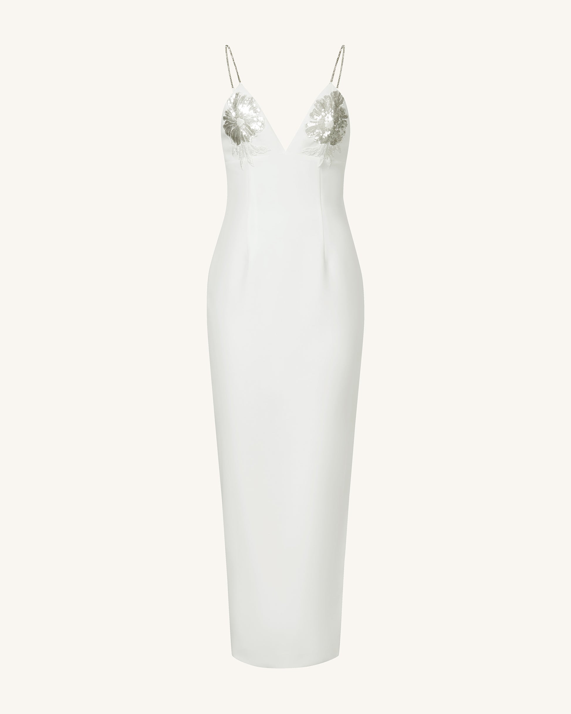Ayliua 甜心領口鑲鑽白色長裙 - 白色