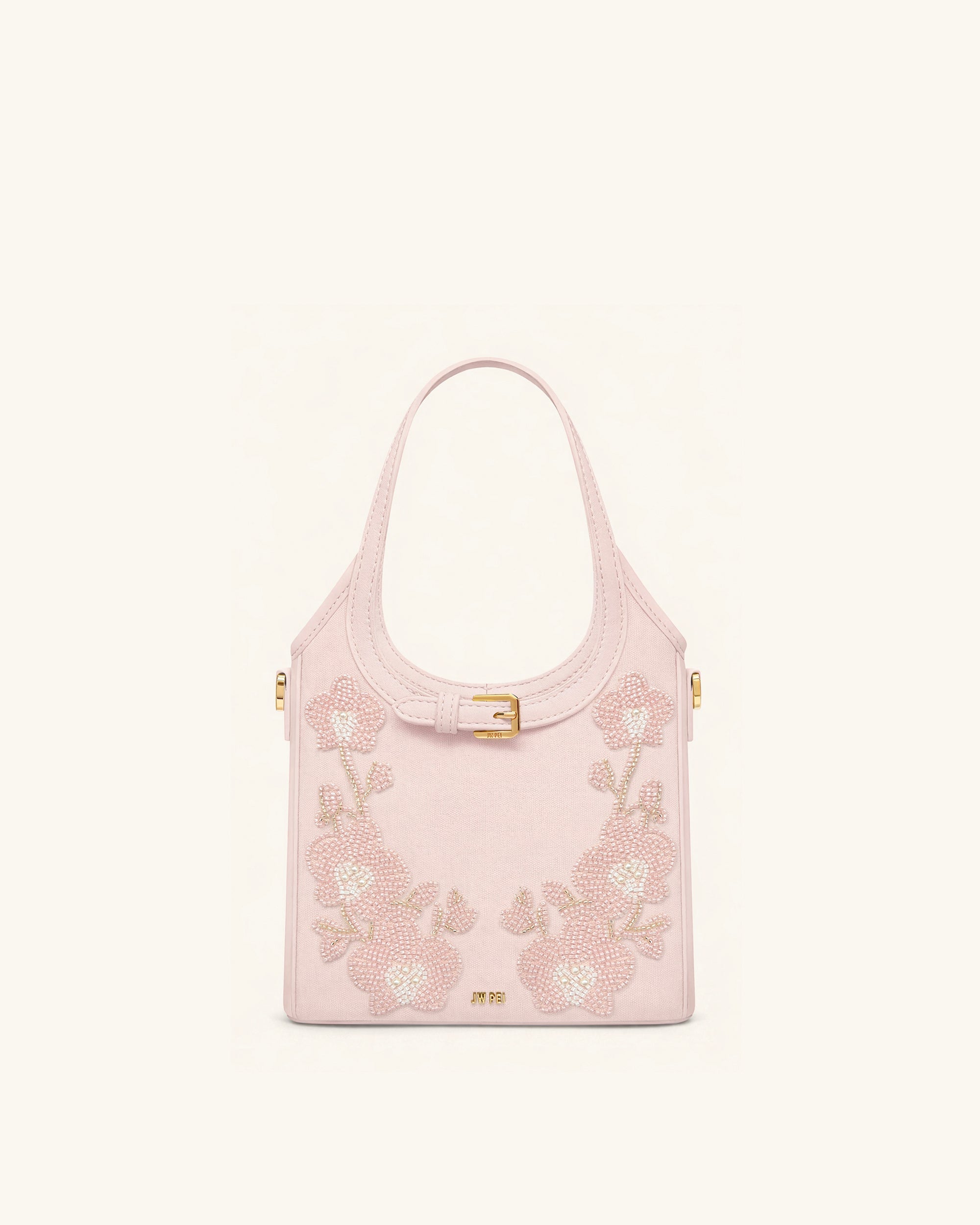 Brooke 迷你皮帶裝飾蘭花串珠手提包 - 粉紅色