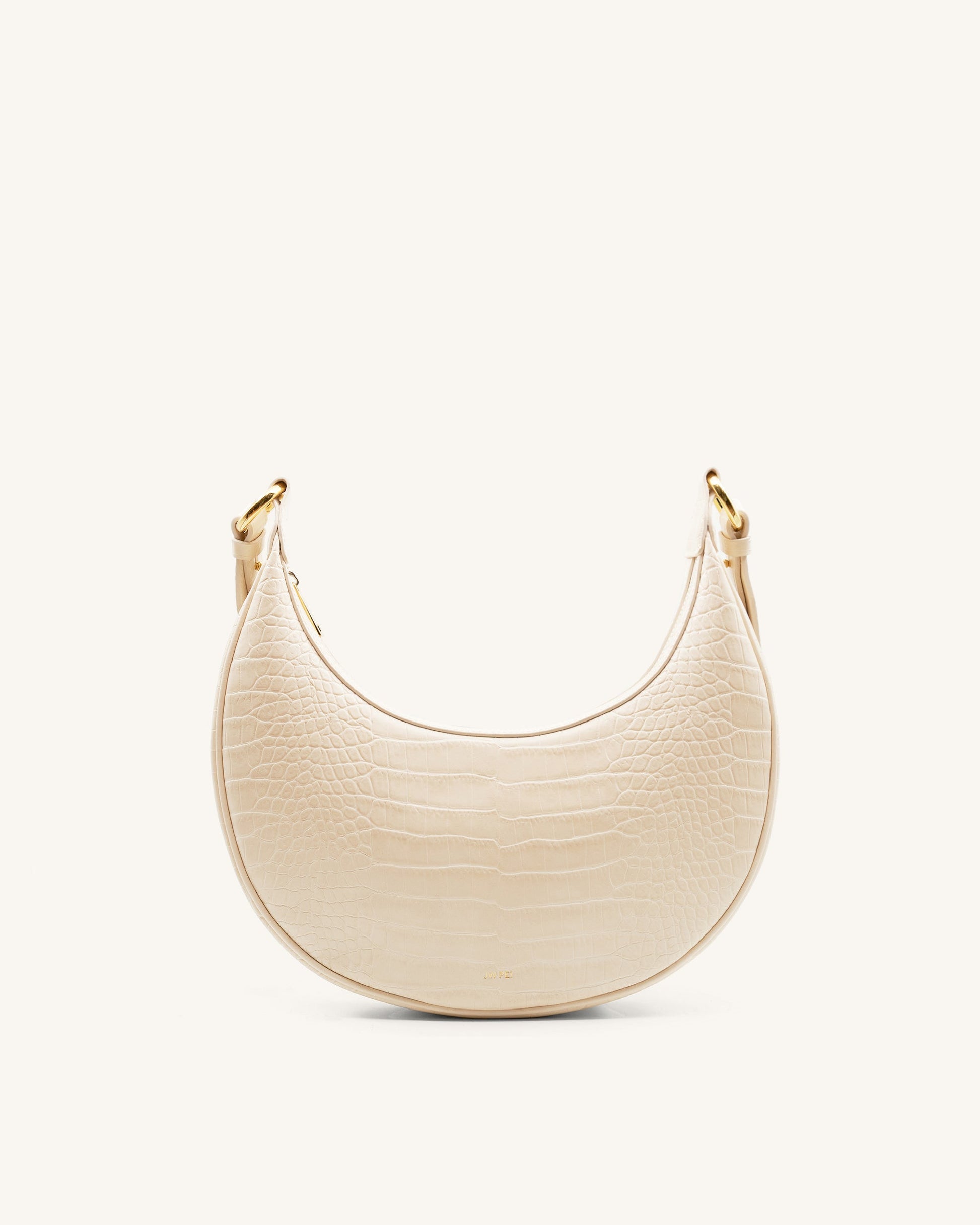 Carly 馬鞍包 - 象牙白色鱷魚紋