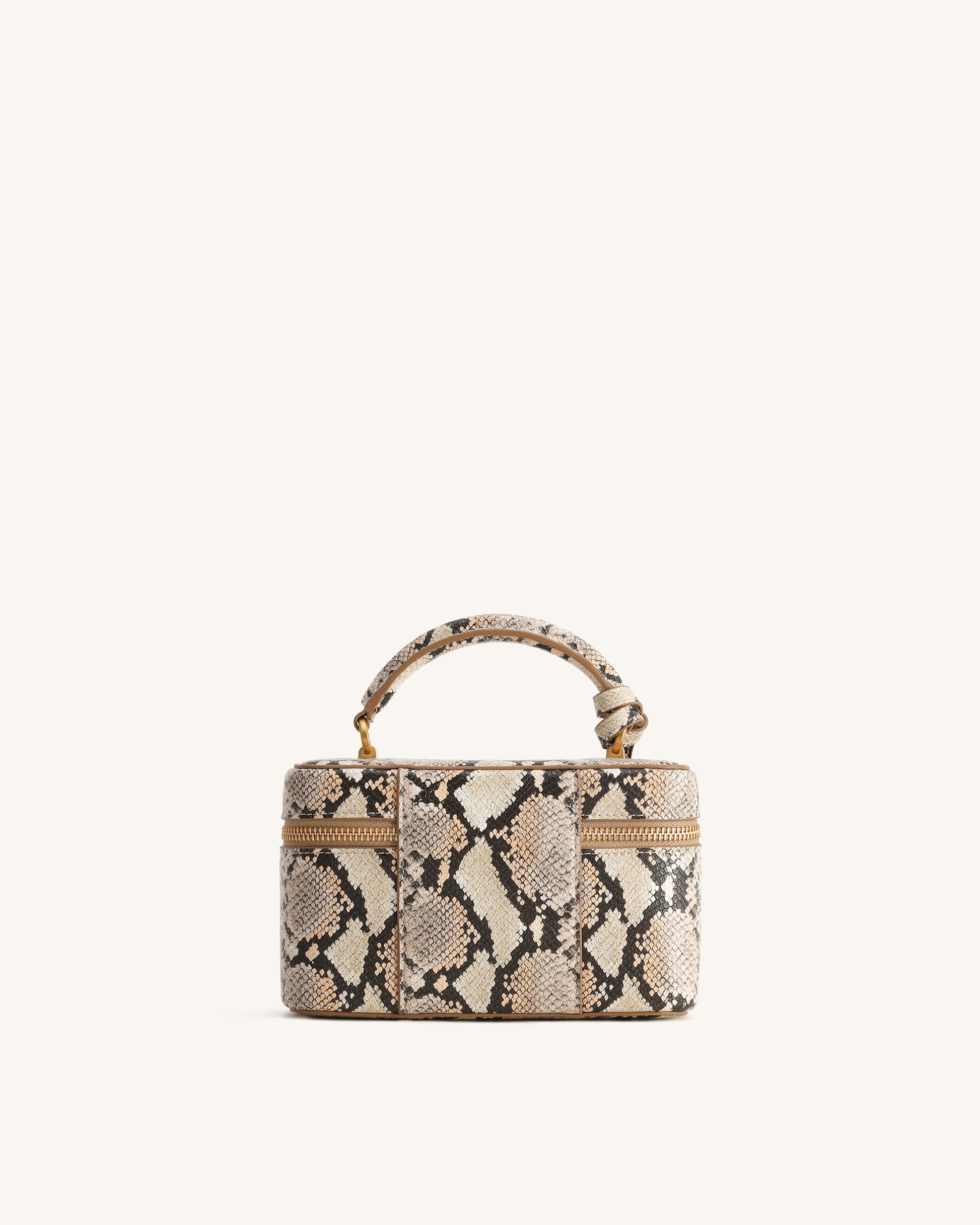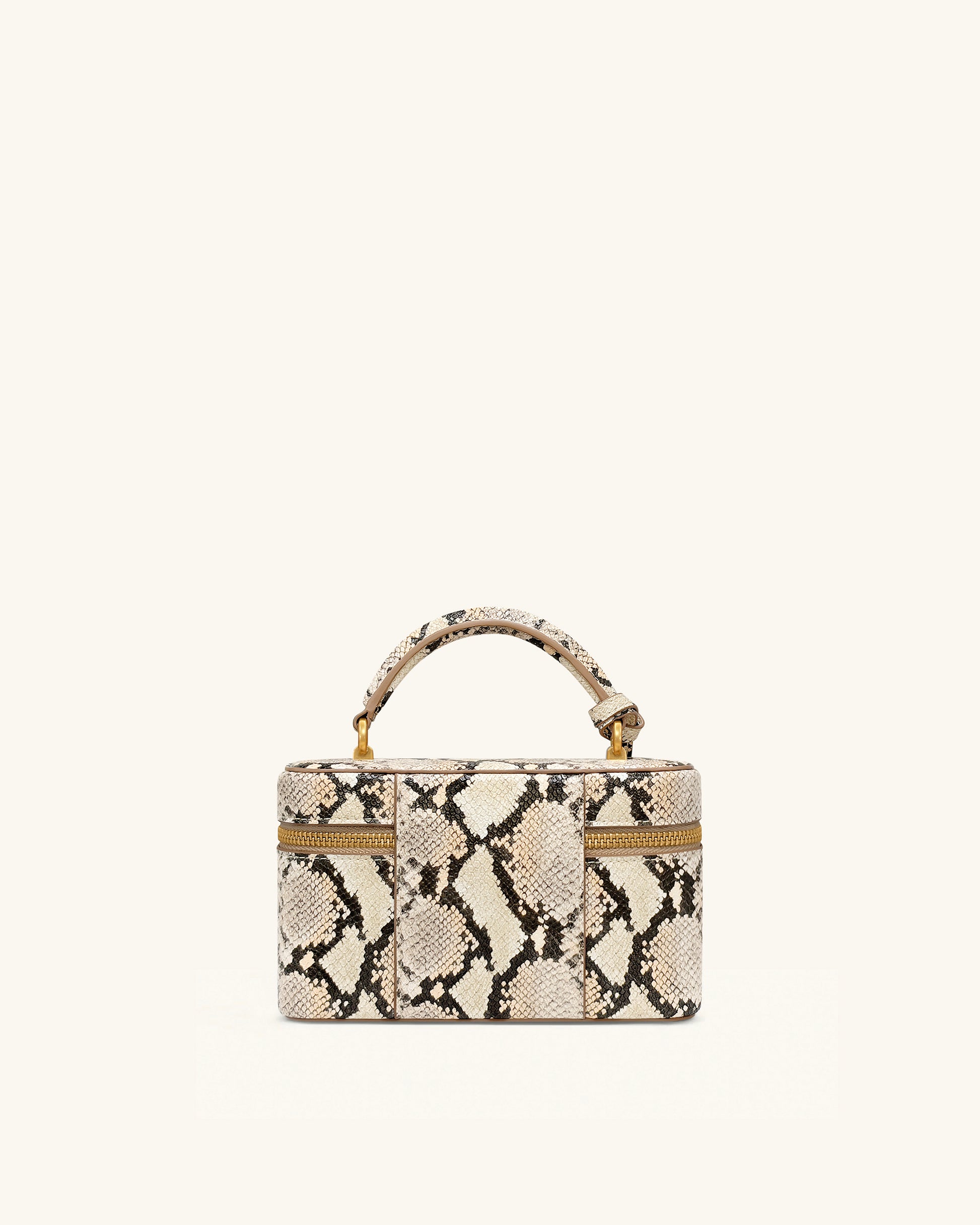 Cleo 蛇紋壓花盒形提把包 - 米色