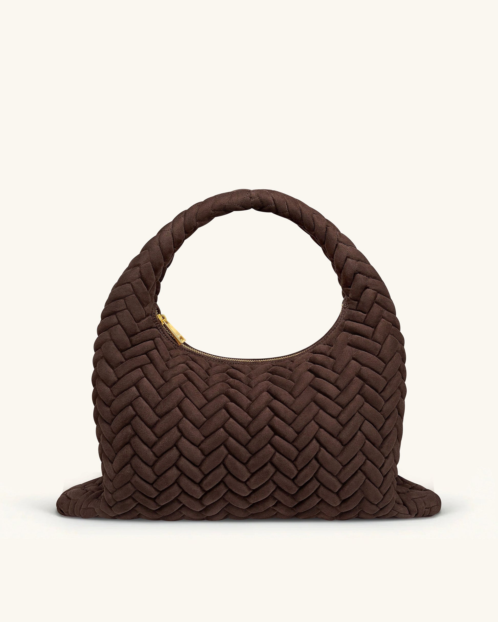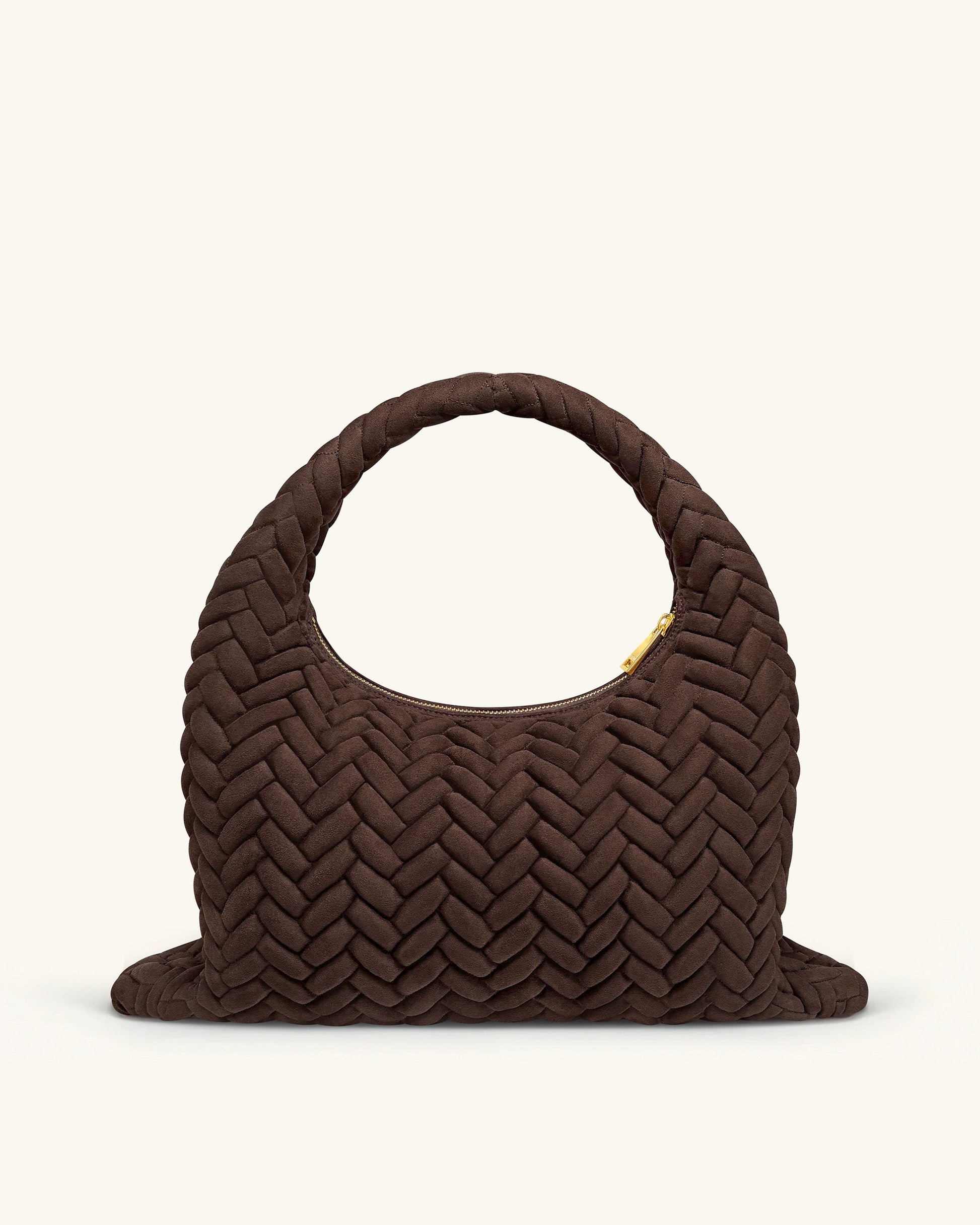 Cora 大型仿麂皮菱格紋流浪肩背包 - 深棕色