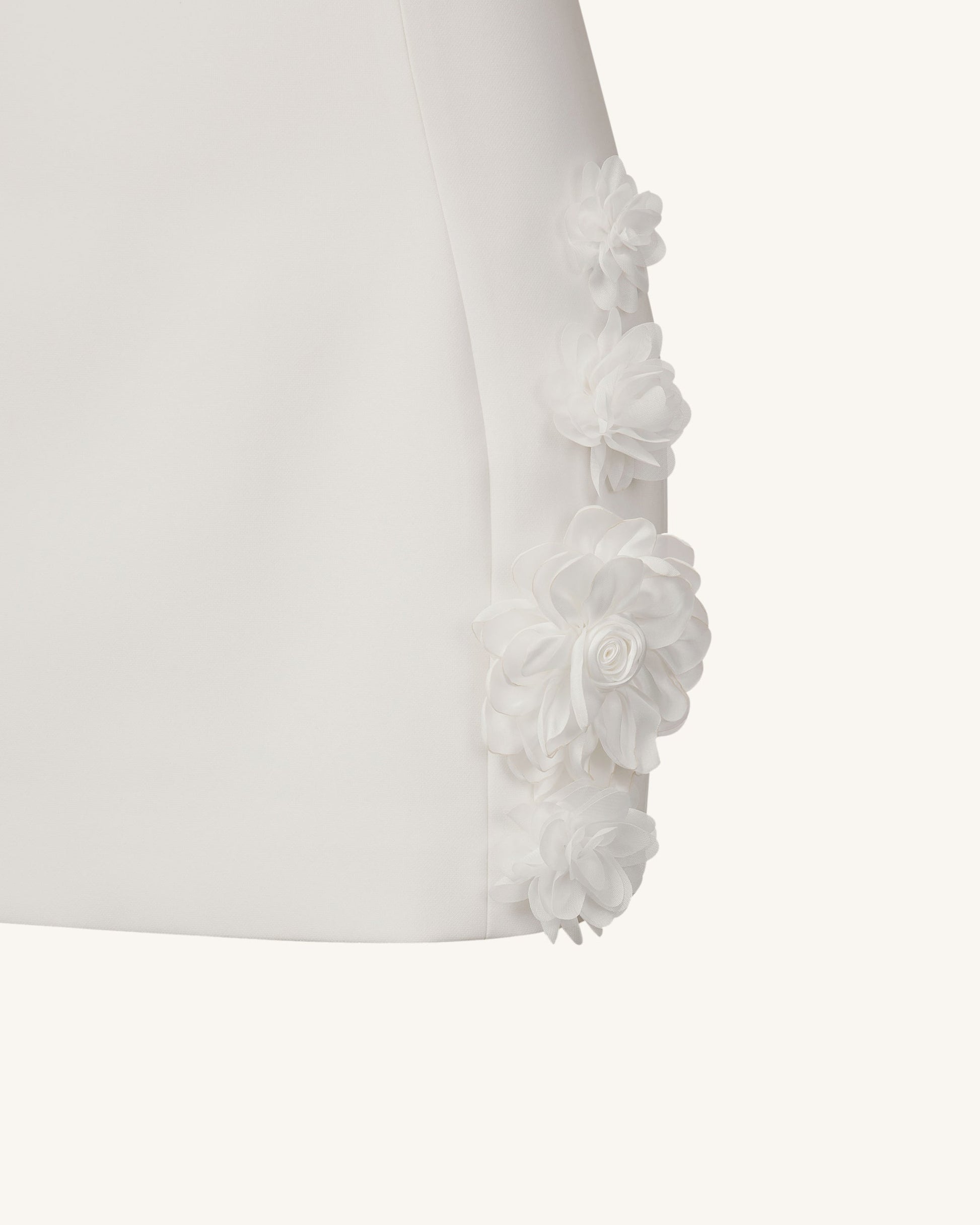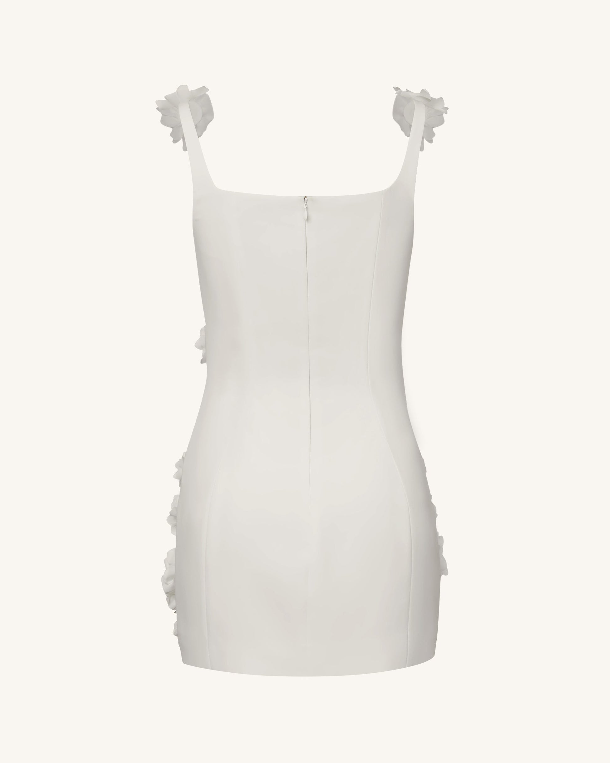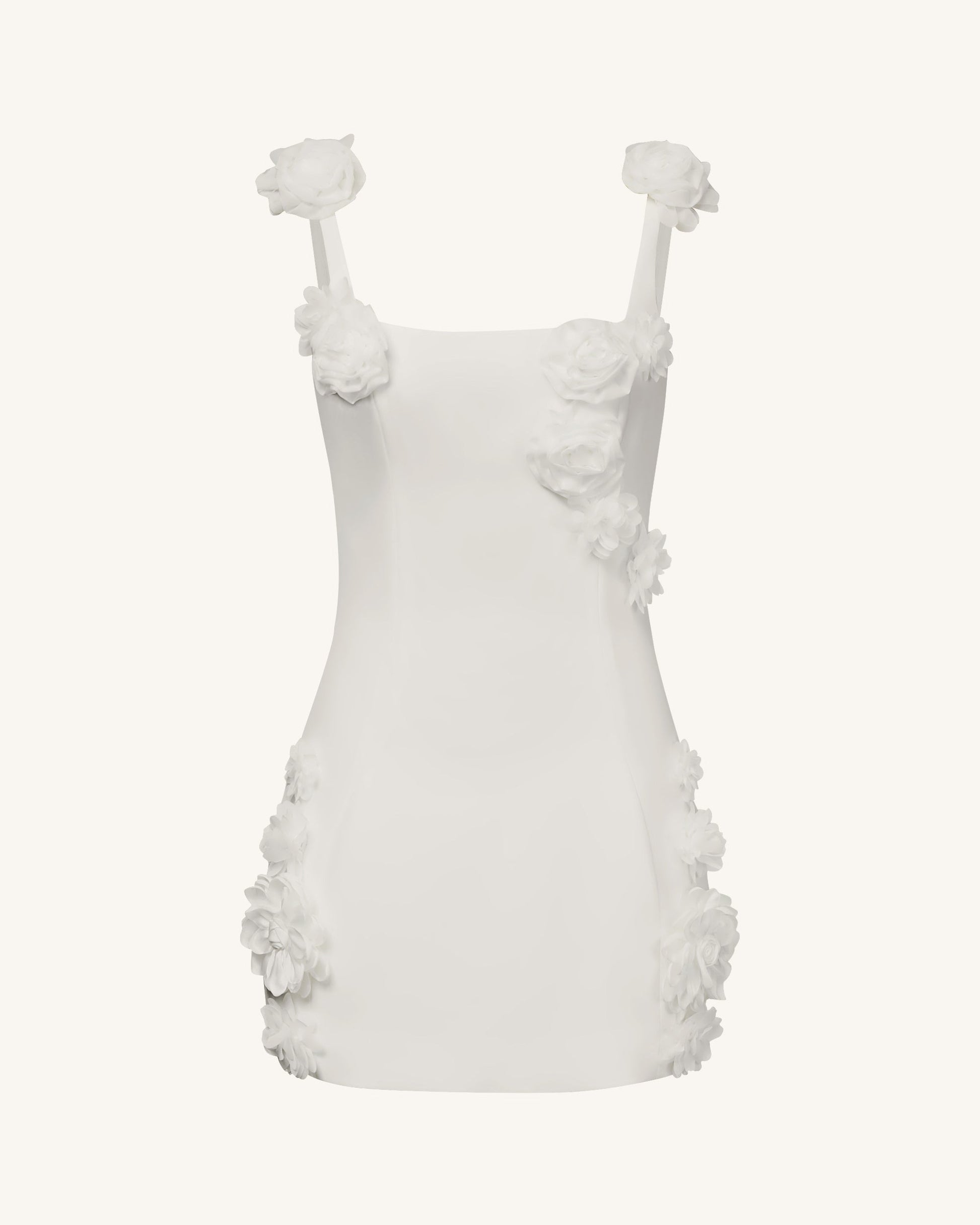 Elaina 白色玫瑰花飾迷你連衣裙-白色