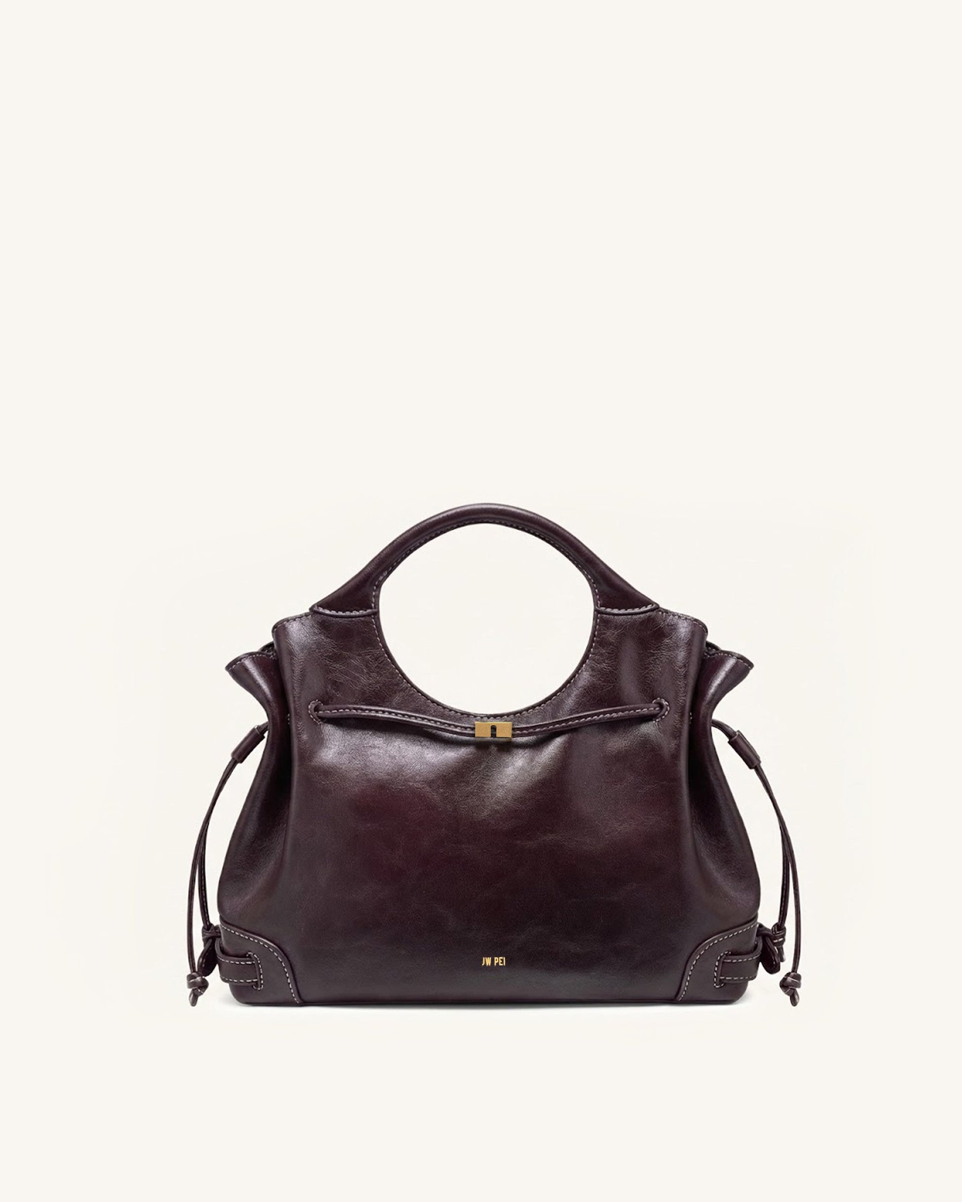 Elara 蠟感純素皮革束口托特包 - 酒紅色