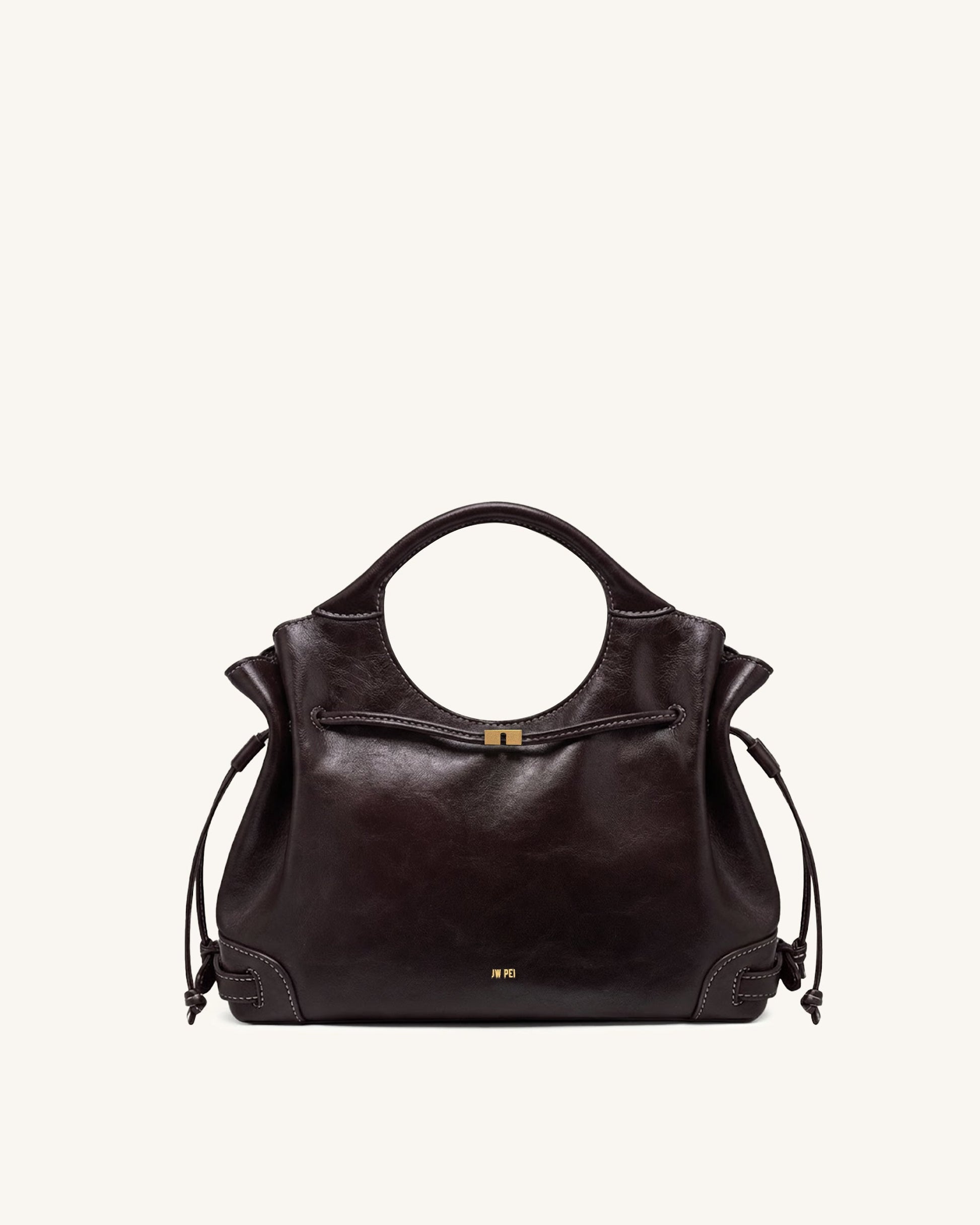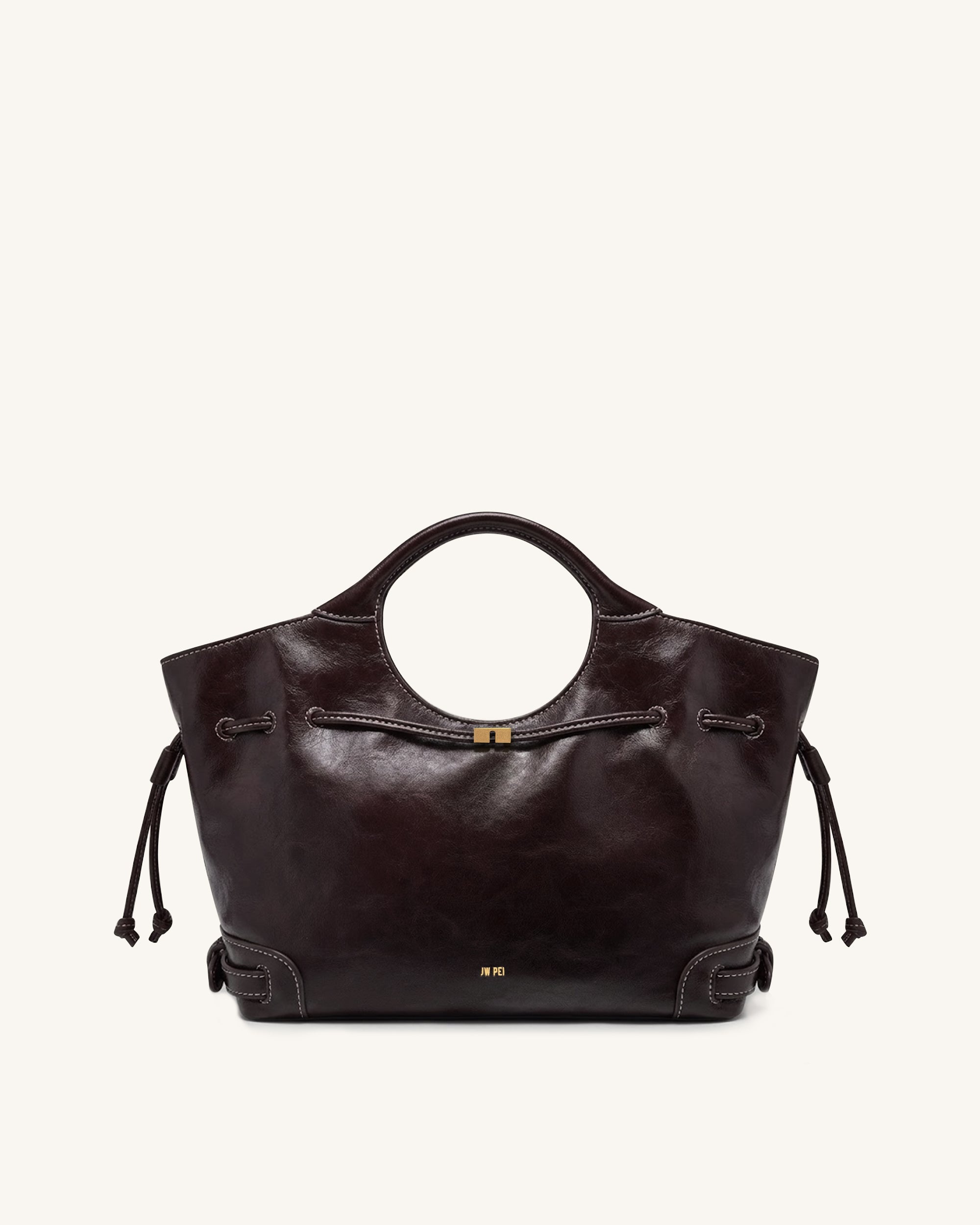 Elara 蠟感純素皮革束口托特包 - 深棕色