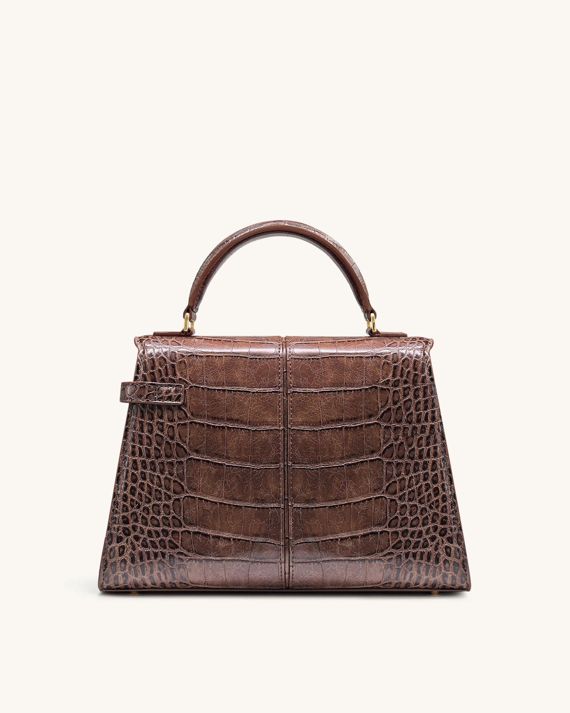 Elise 大款鱷魚壓紋手提包-栗子棕