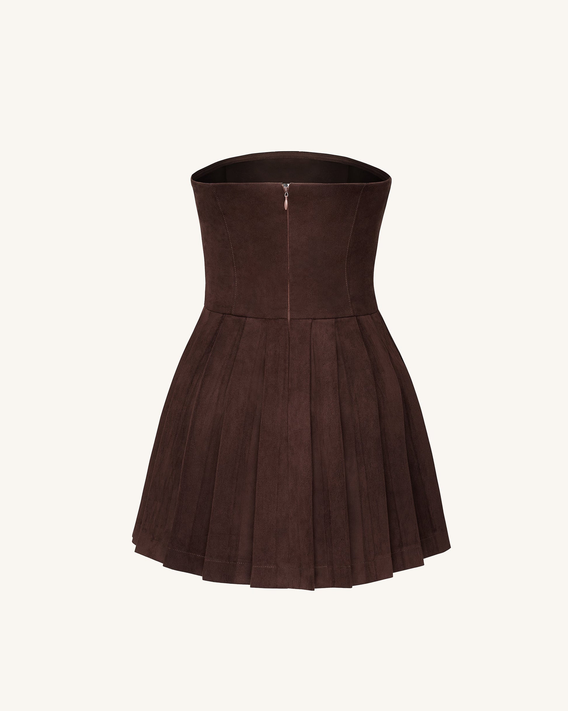 Ellie 摺邊天鵝絨洋裝 - 巧克力棕
