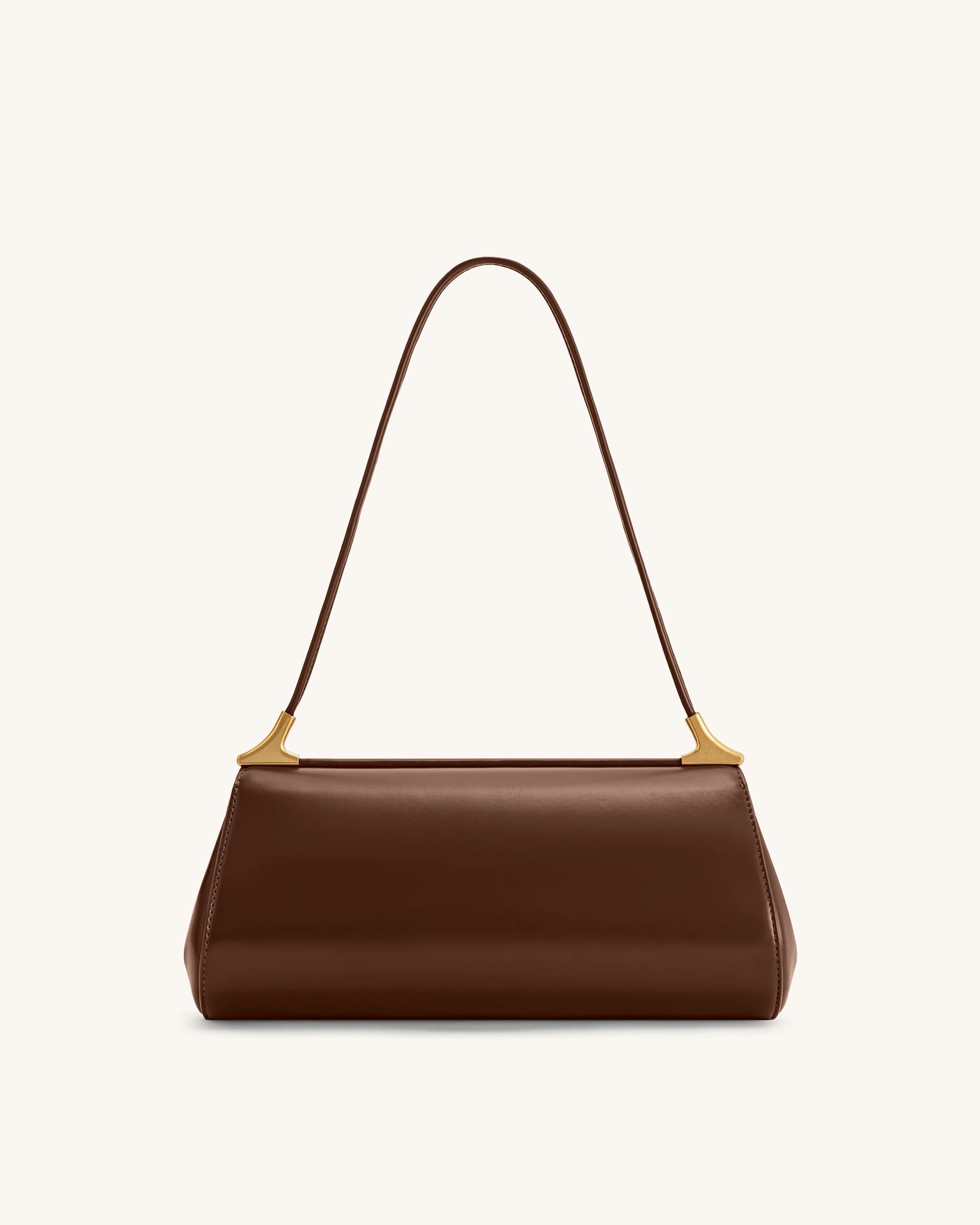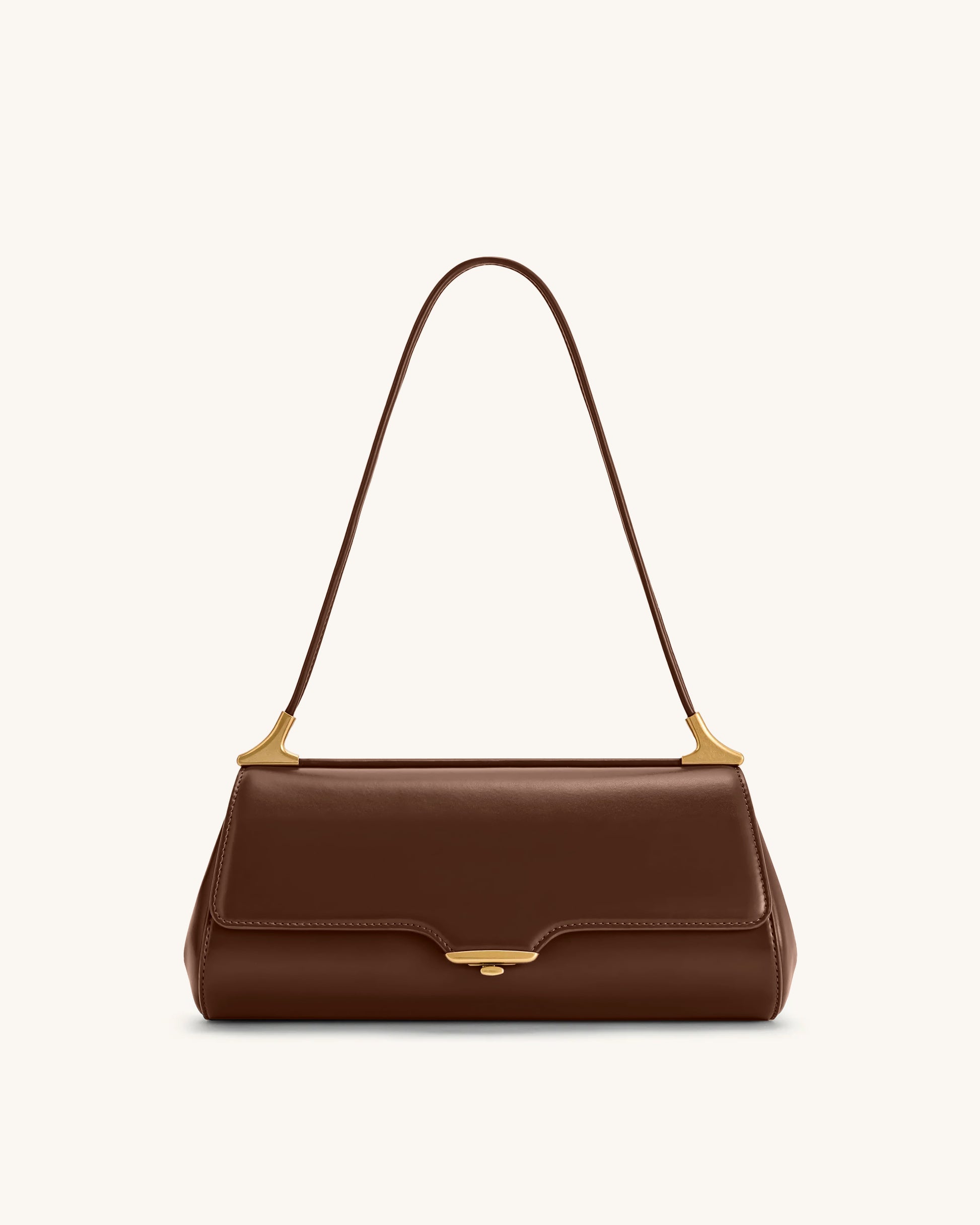 優雅的棕色肩背包,結構流暢。金色五金點綴增添高雅氣息。適合必需品及日常使用。