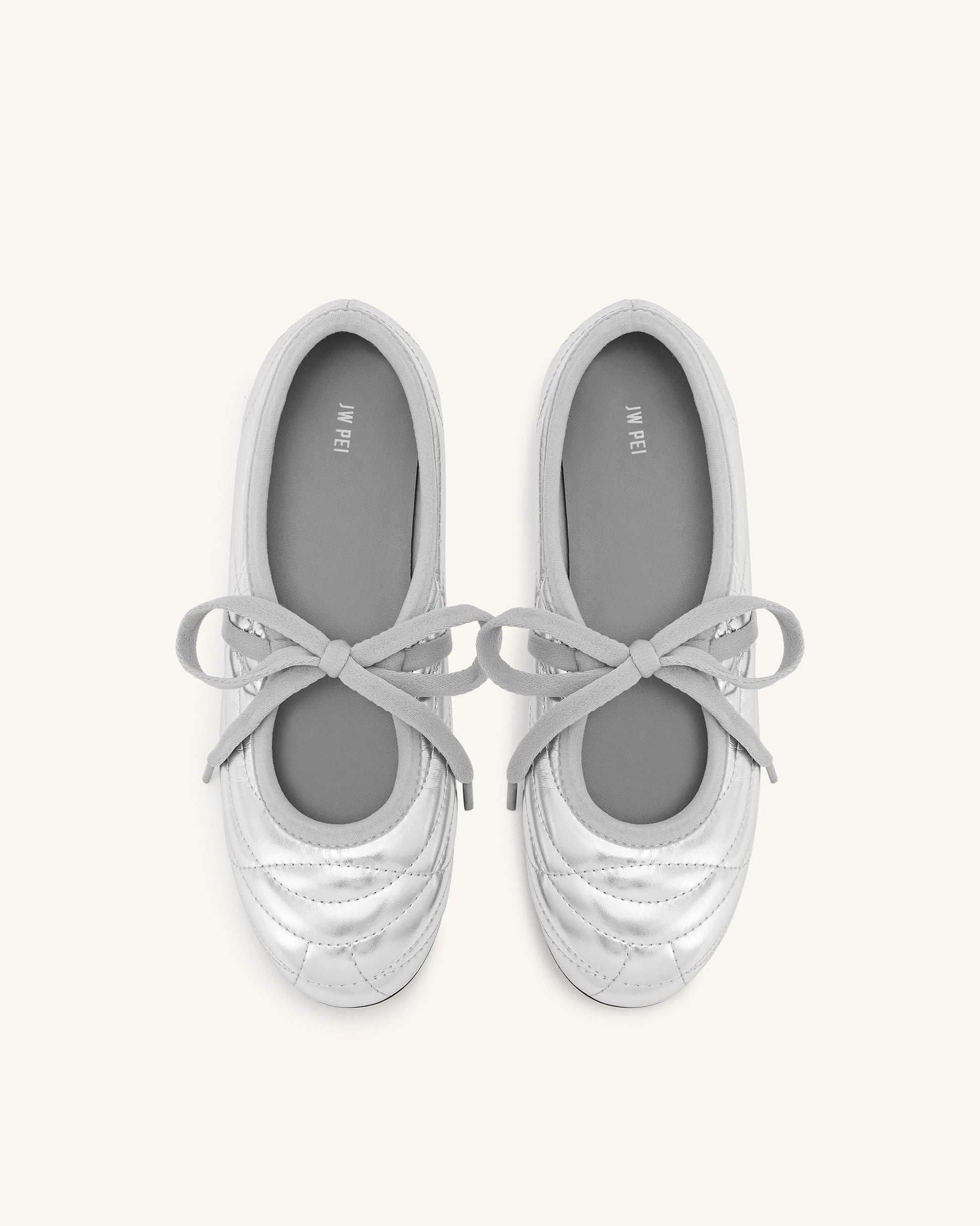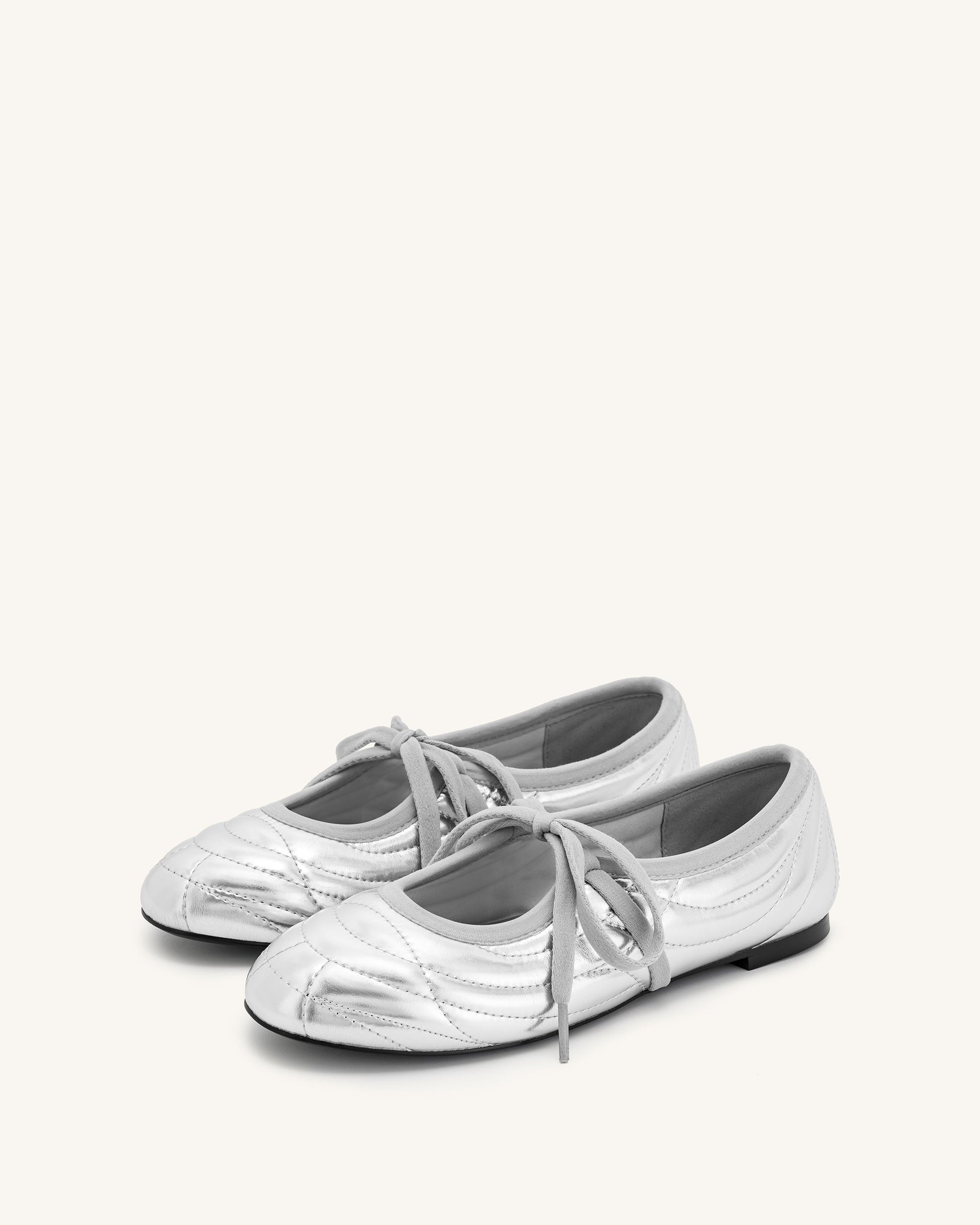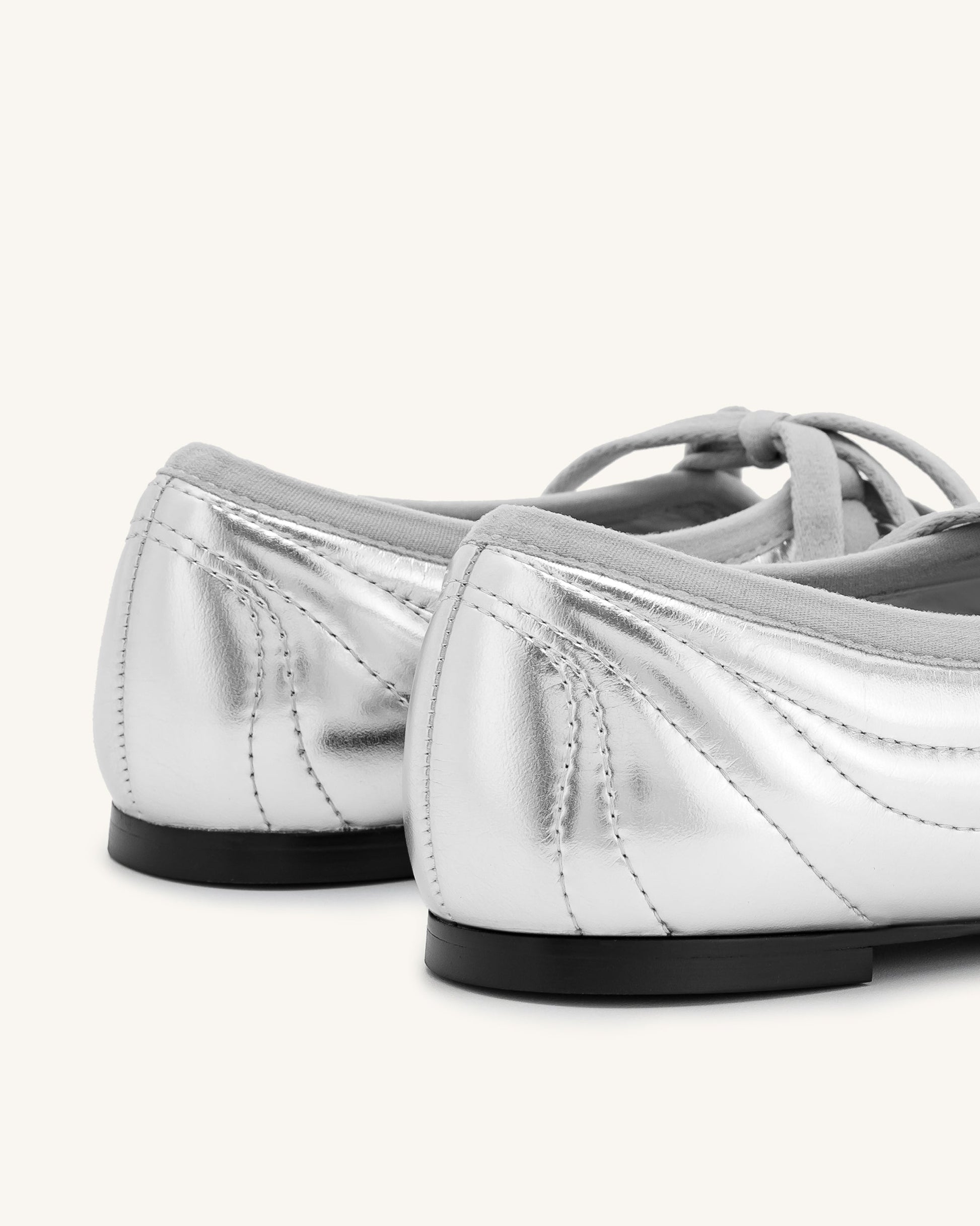 Erika 明線繫帶芭蕾平底鞋 - 銀色