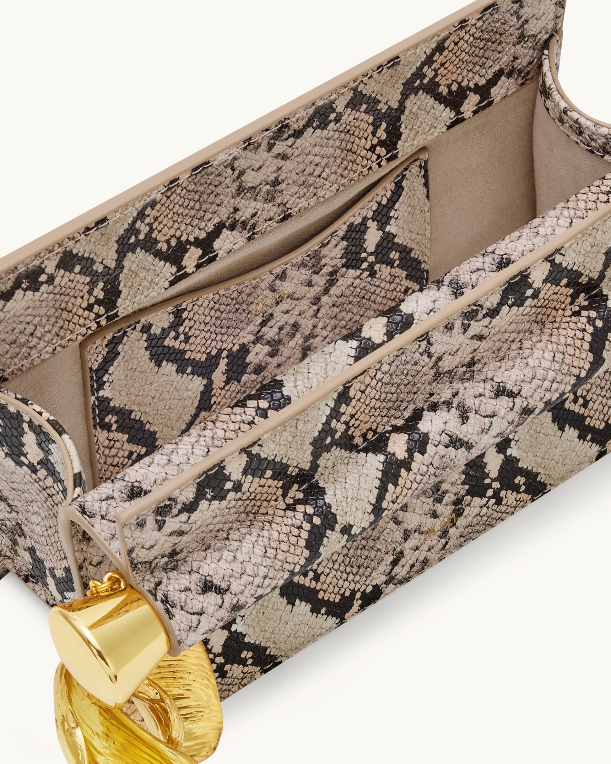 Holly 金屬吊飾蛇紋手拿包 - 杏色