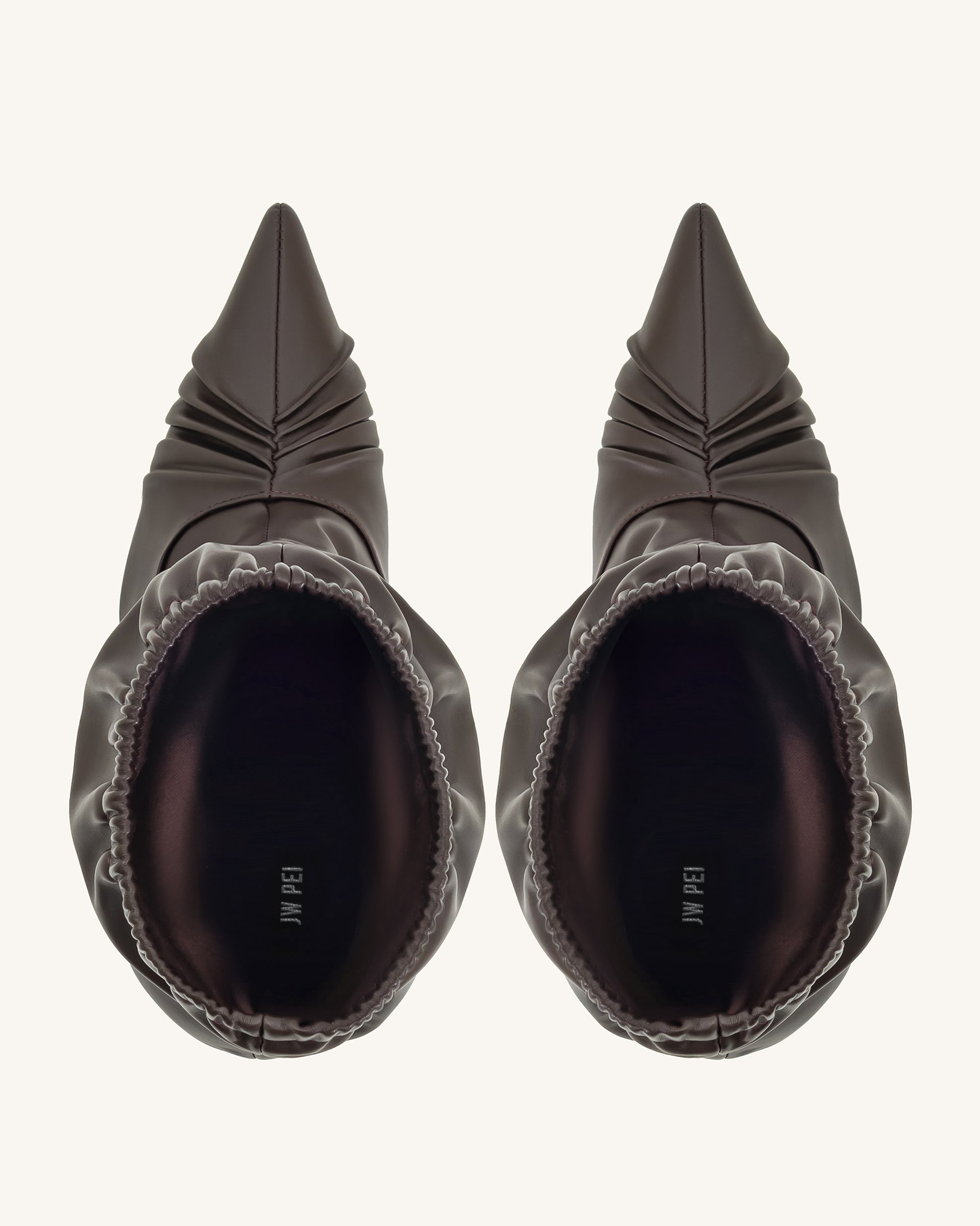 Joanne 拼接細節皮革踝靴 - 酒紅色