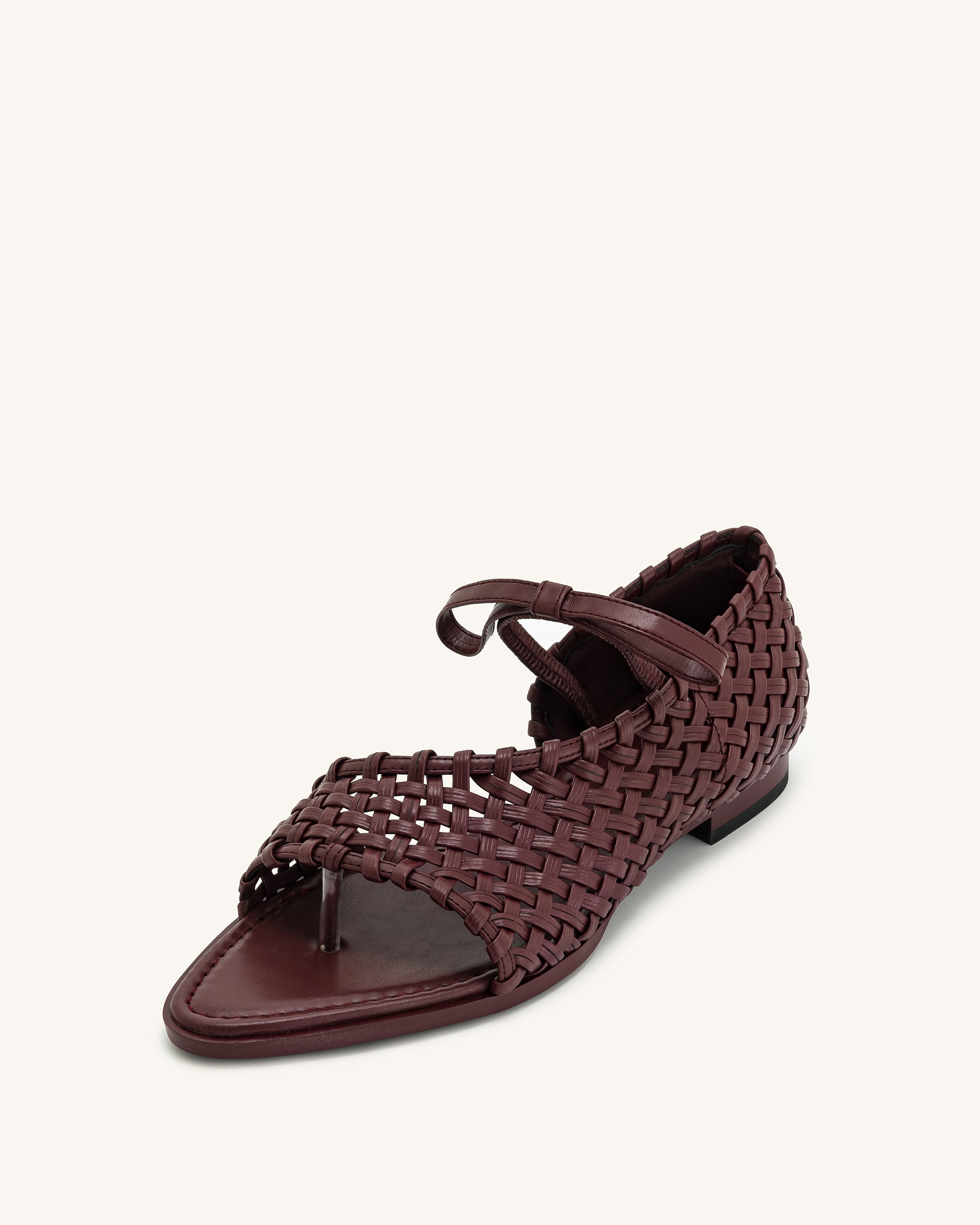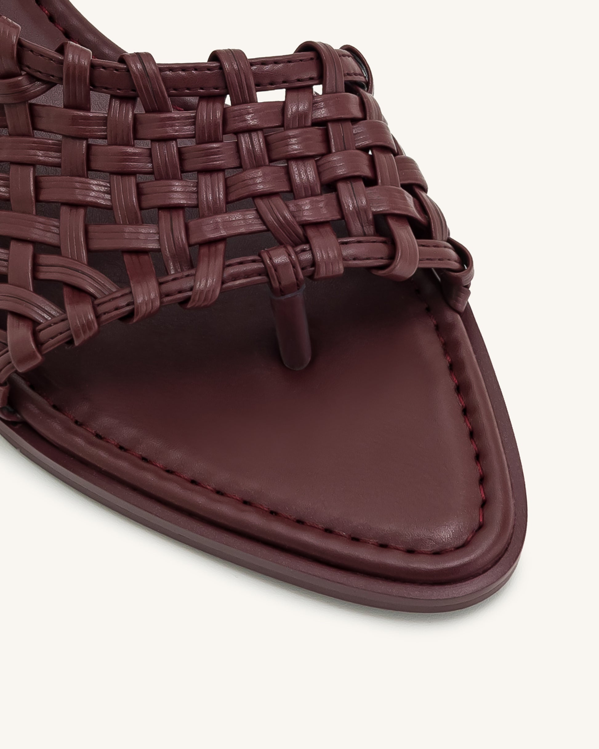 Jocelyn 編織帶人字拖 - 酒紅色