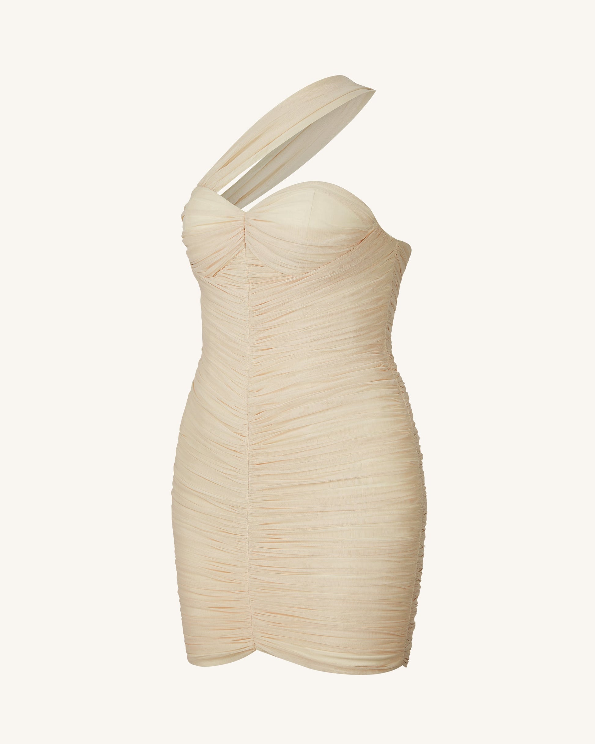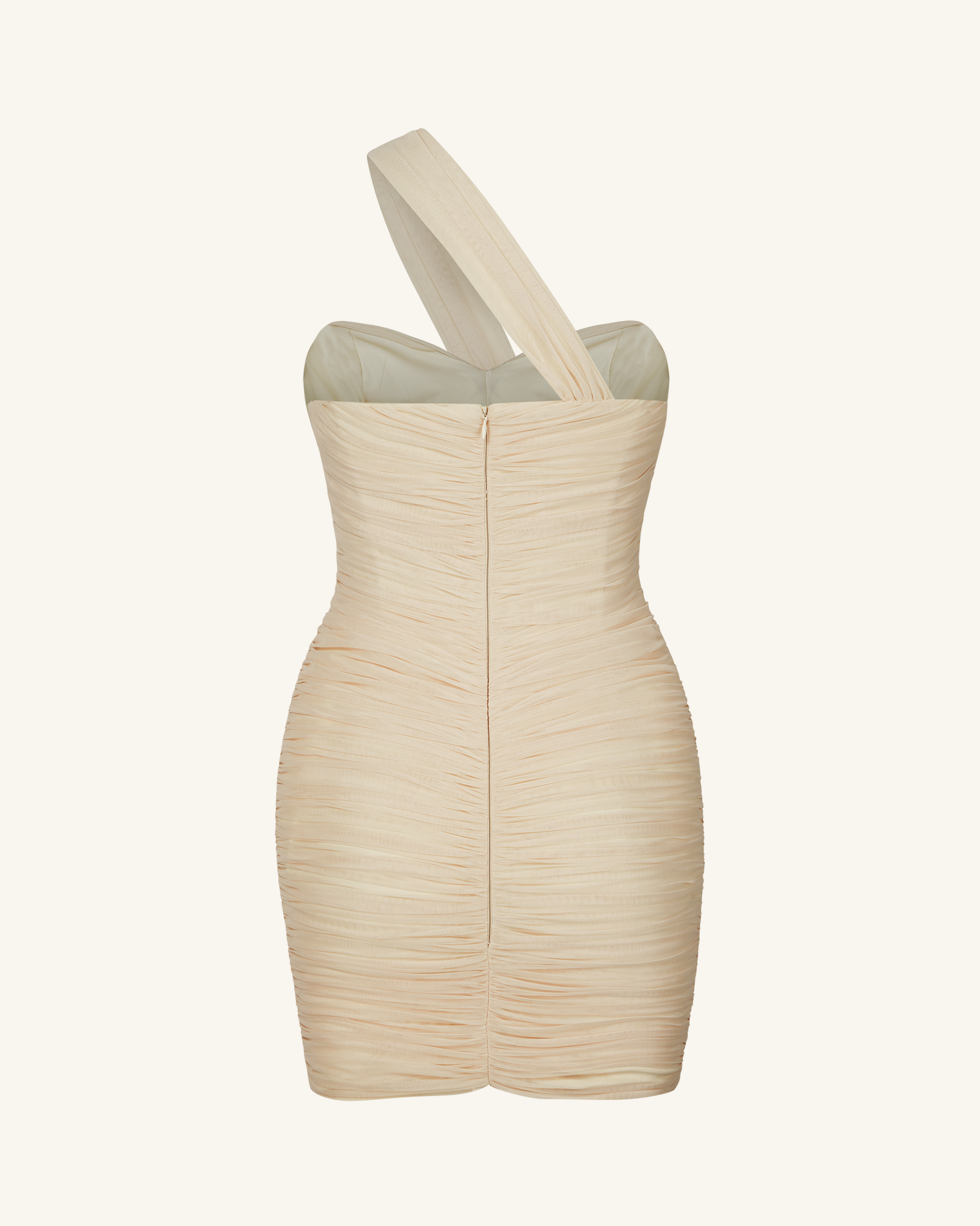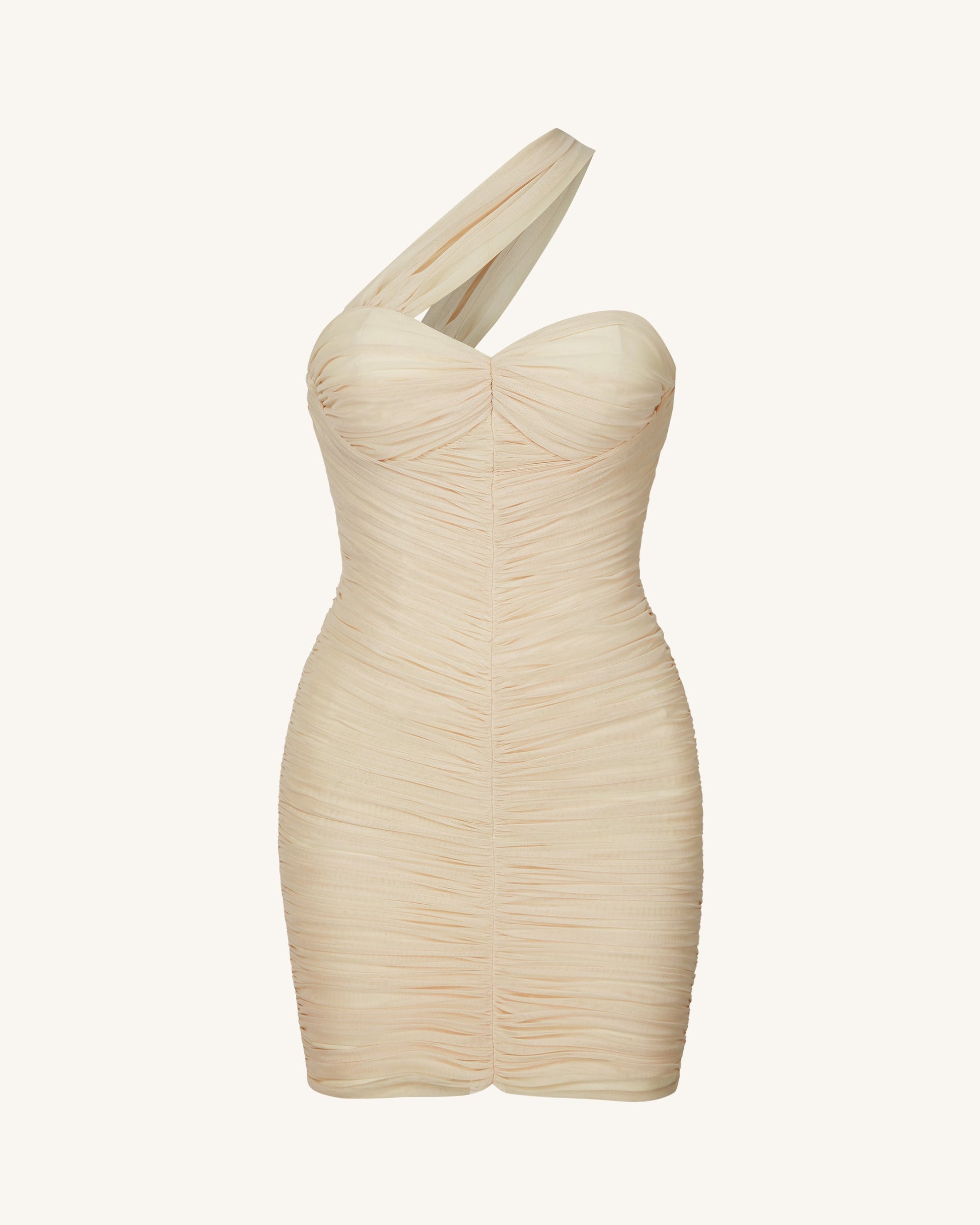 Josephine 單肩抓皺迷你洋裝 - 裸色