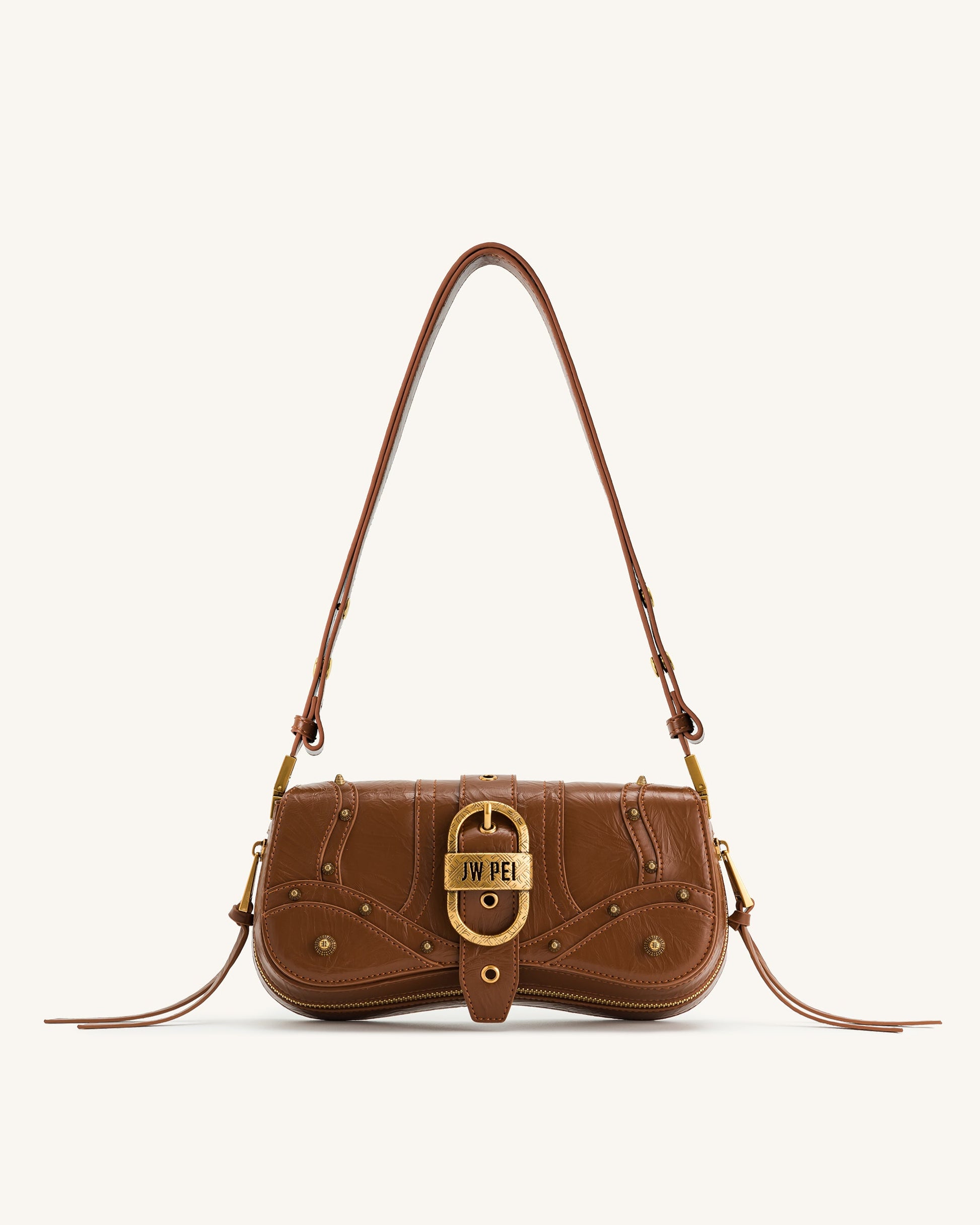 Joy 鉚釘單肩包 - 棕色