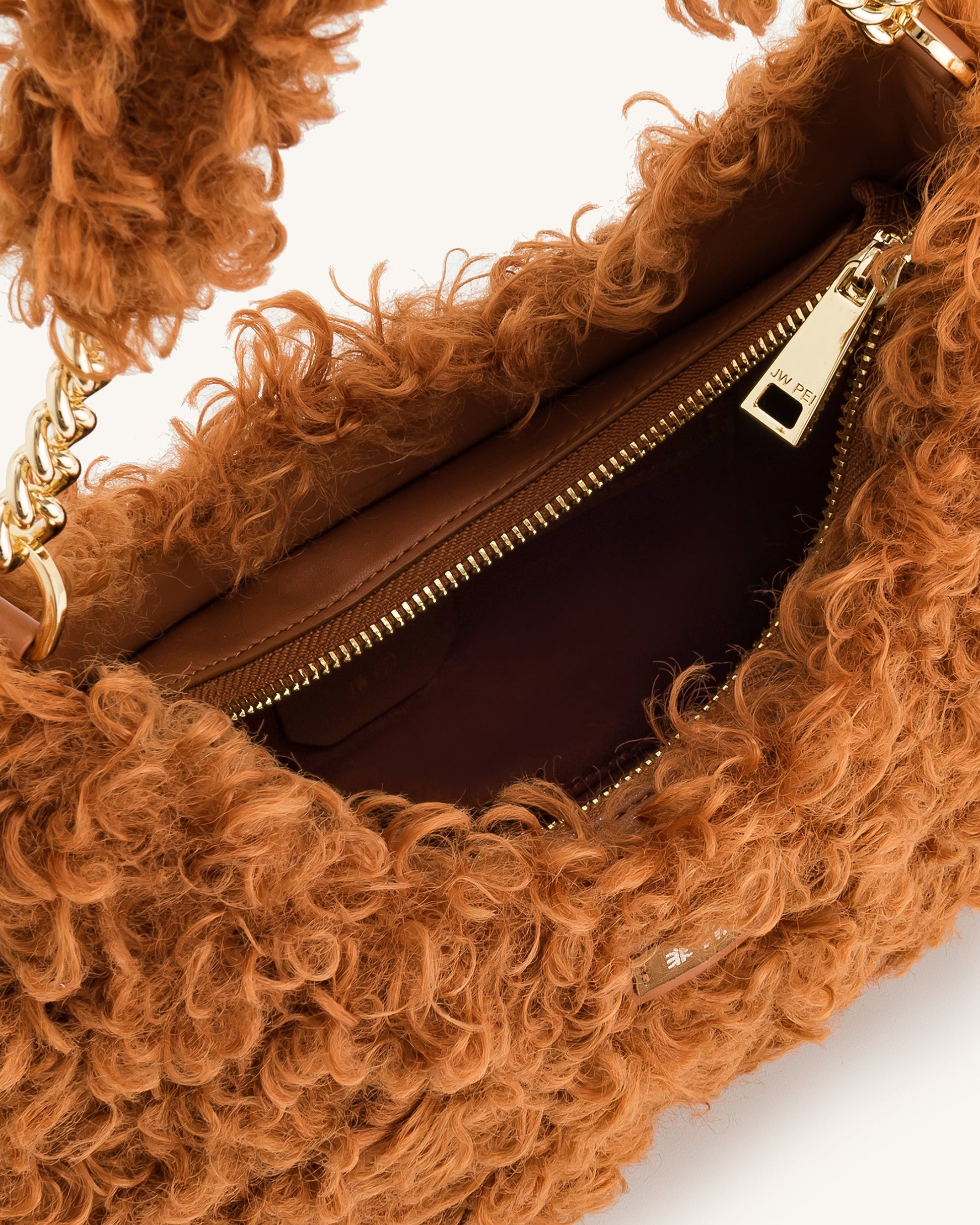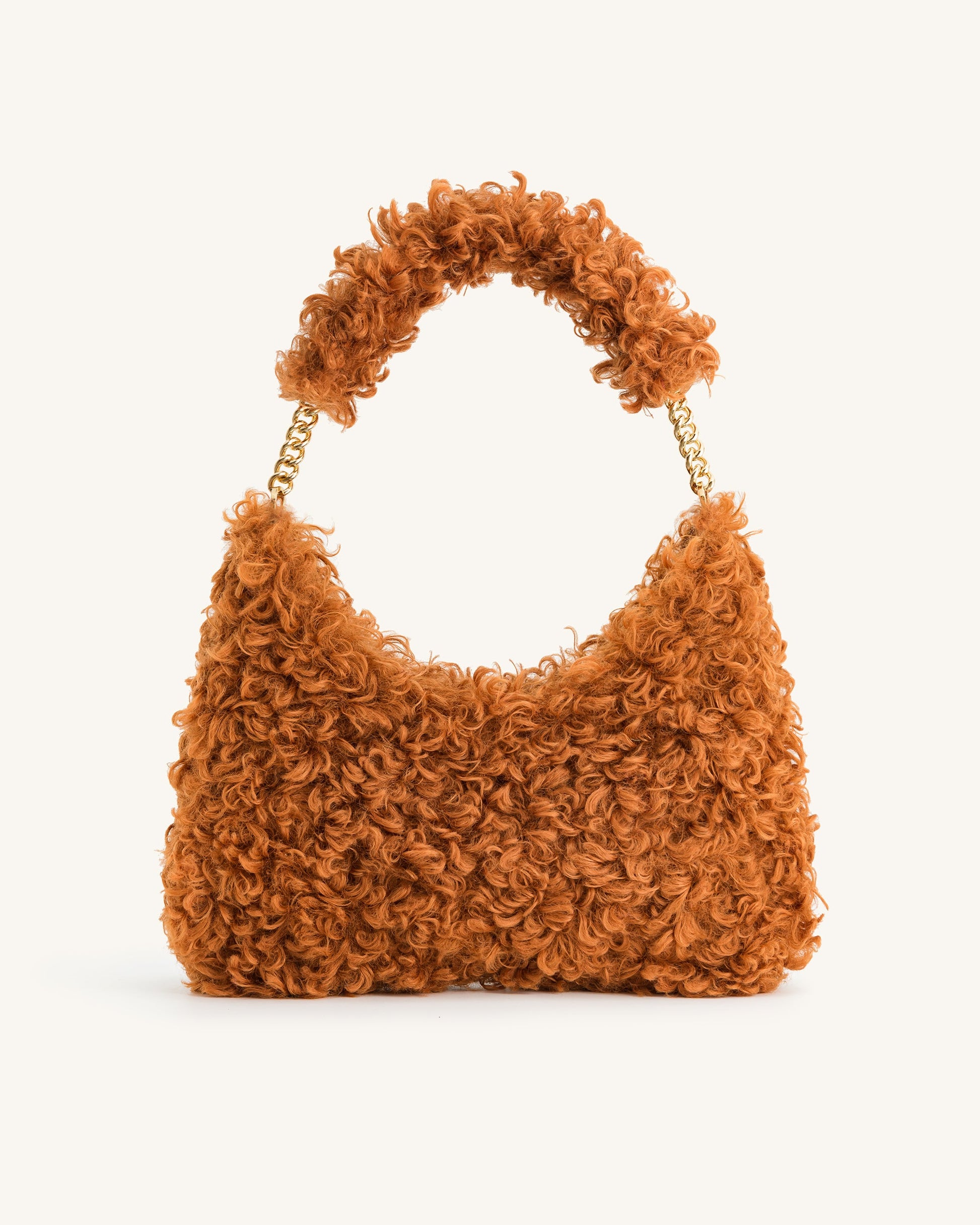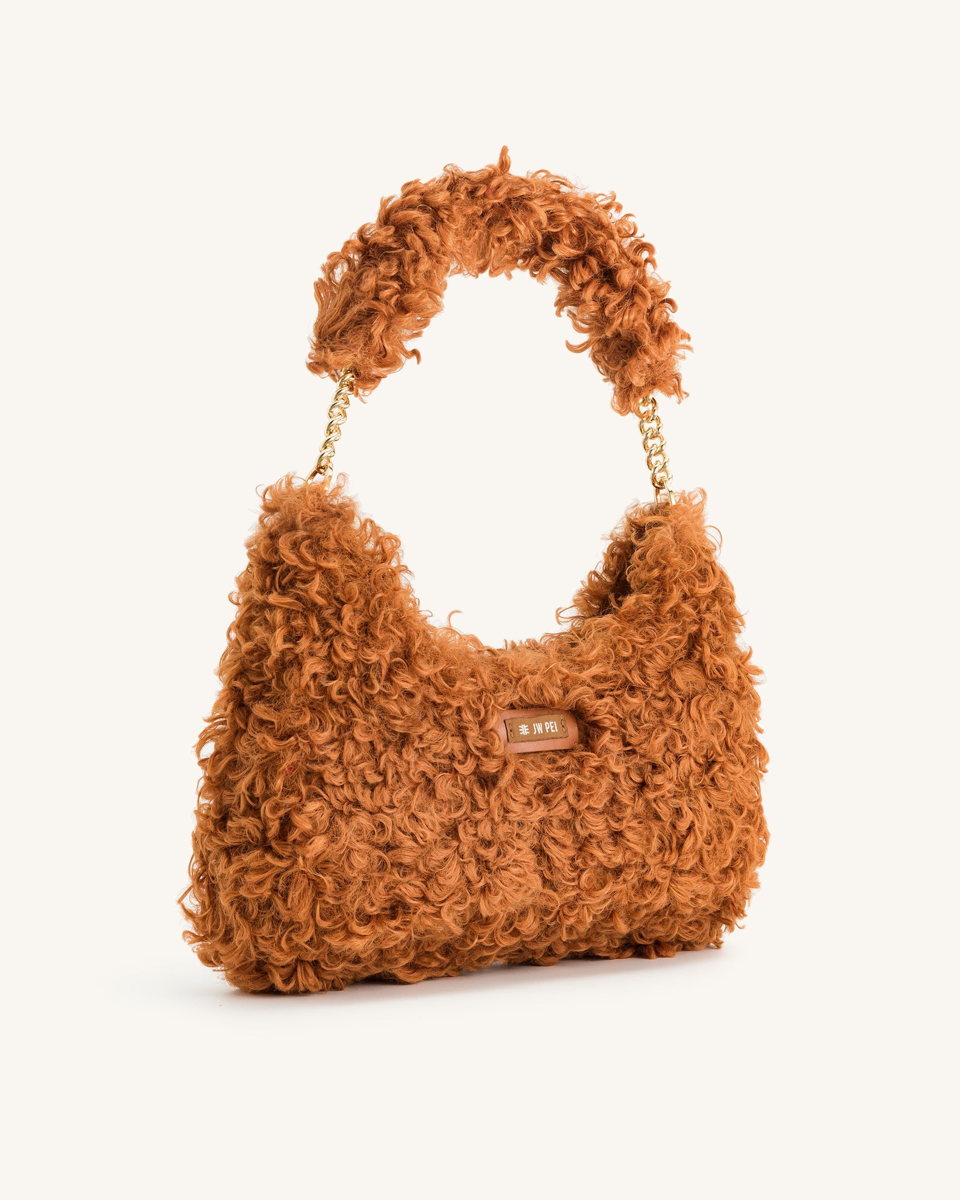 Ruby 人造毛皮絨面單肩包 - 黃棕色
