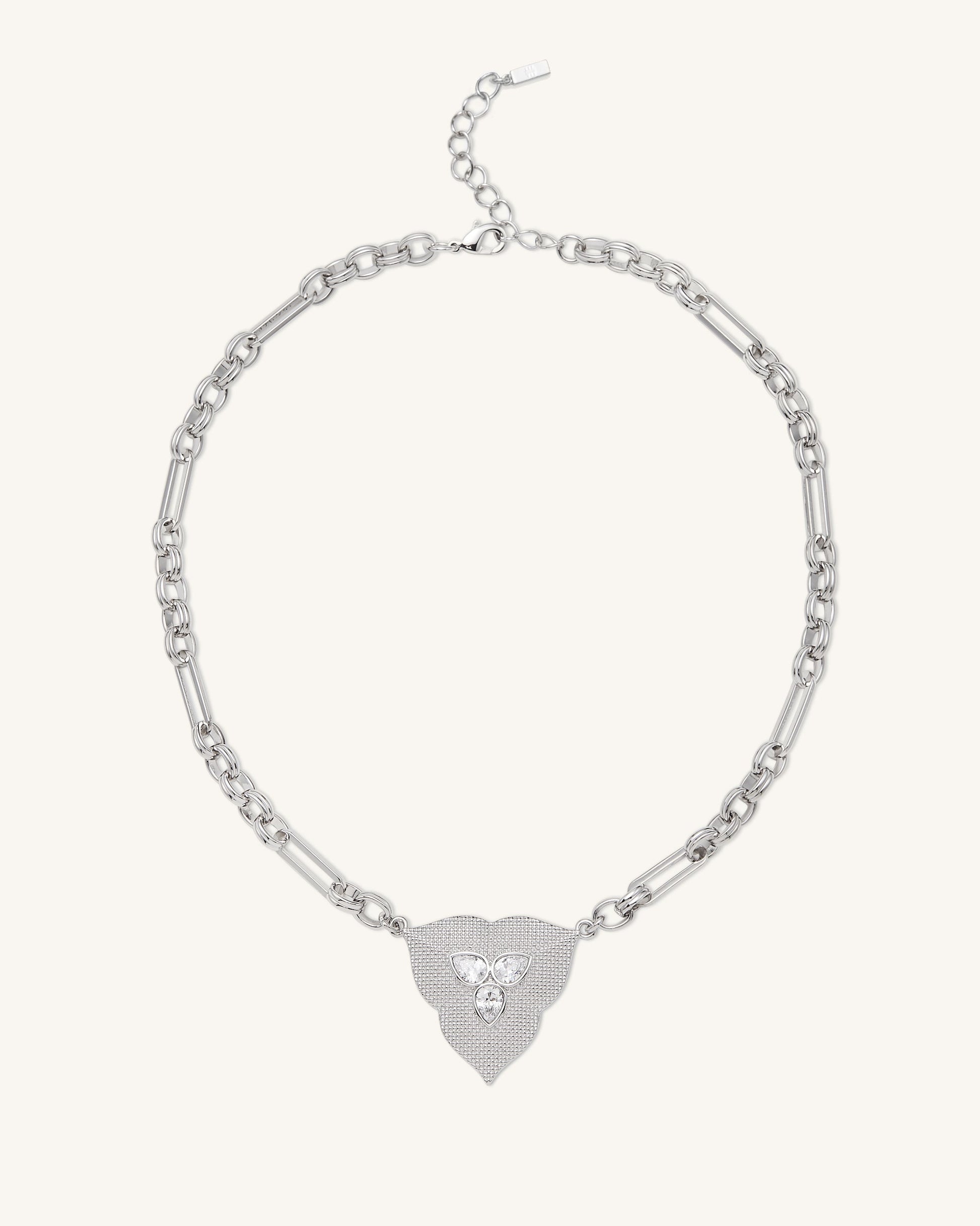 葉子吊墜項鍊 - 18ct 鍍白金 & 白色鋯石
