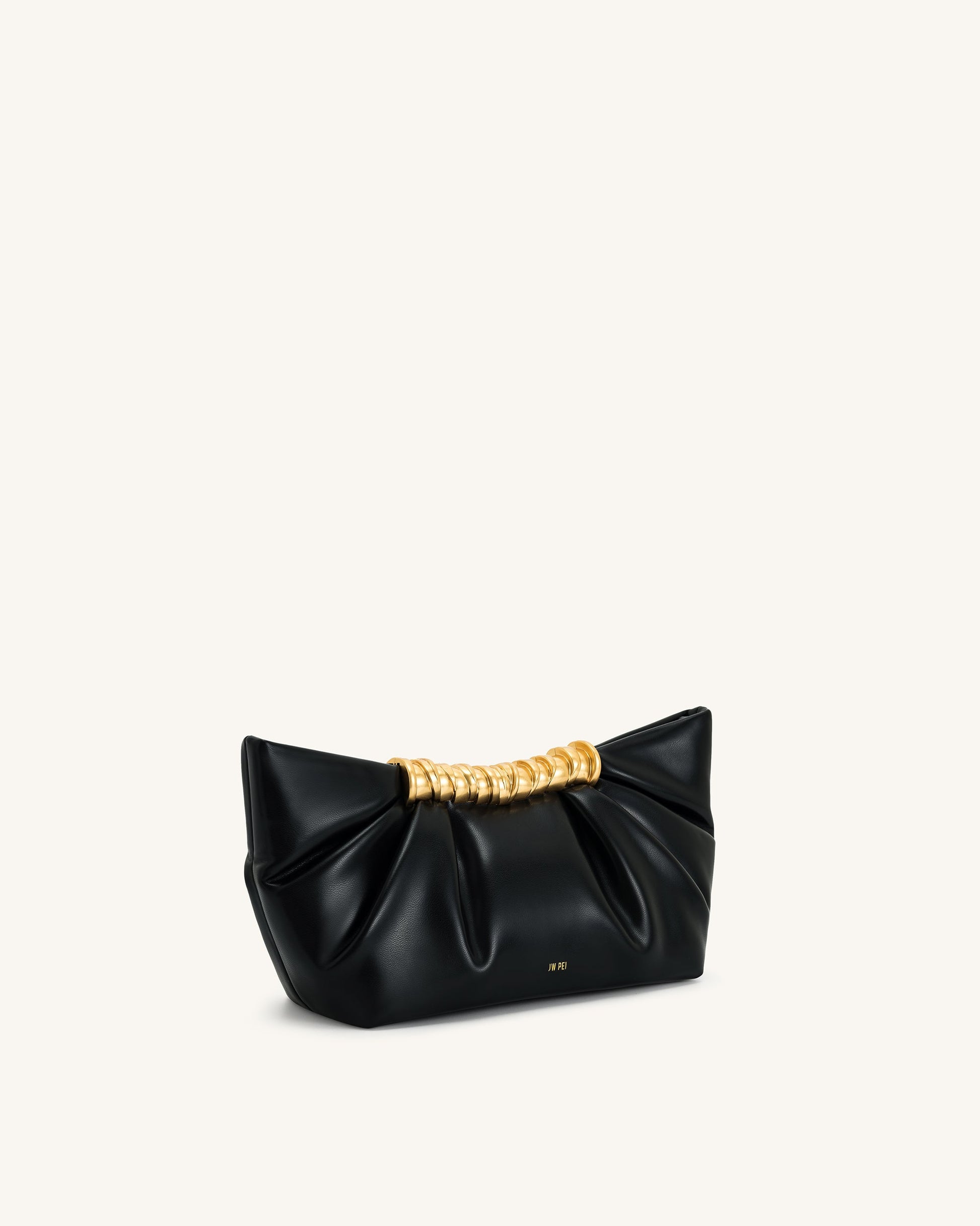 Leia 摺紋手拿包 - 黑色