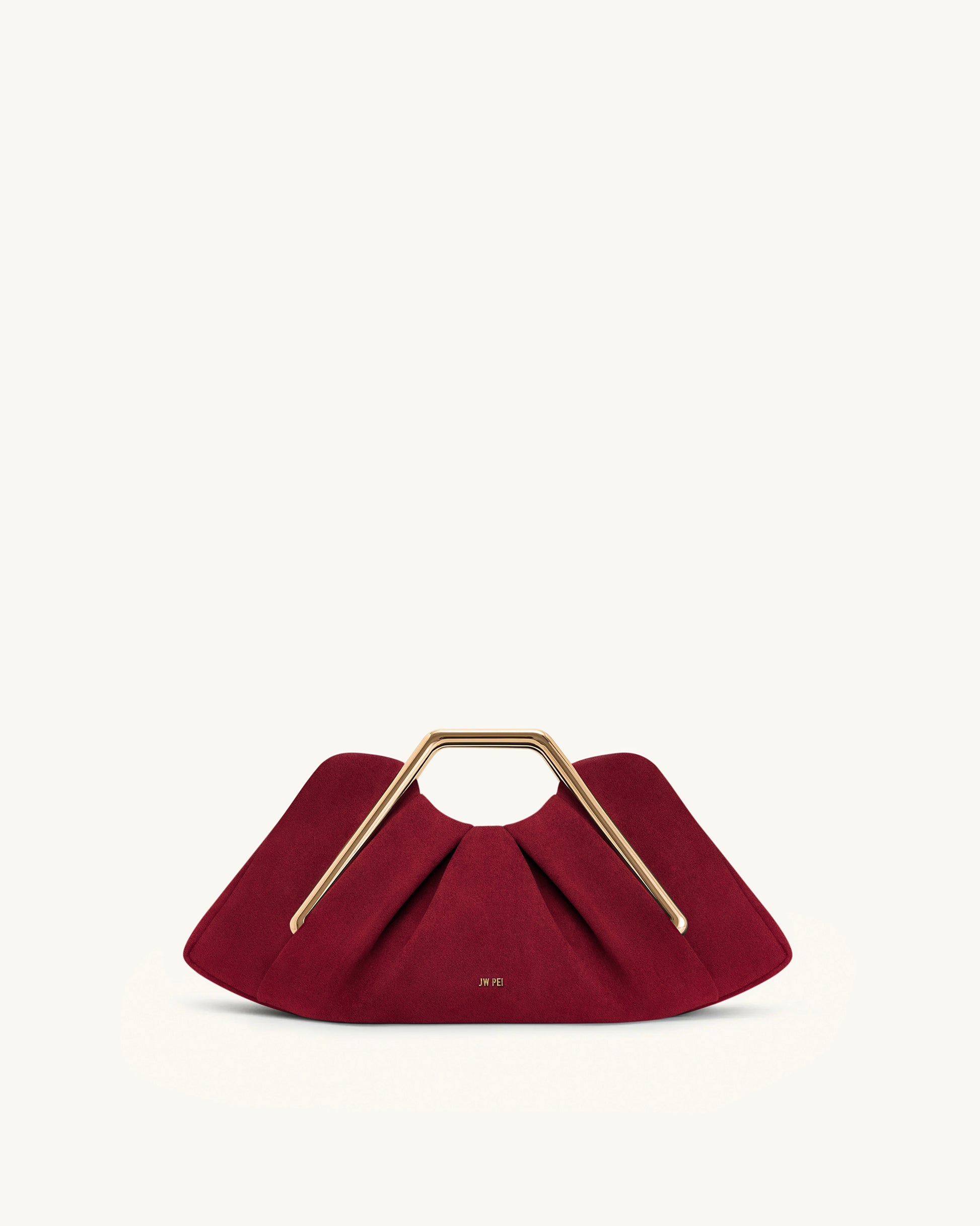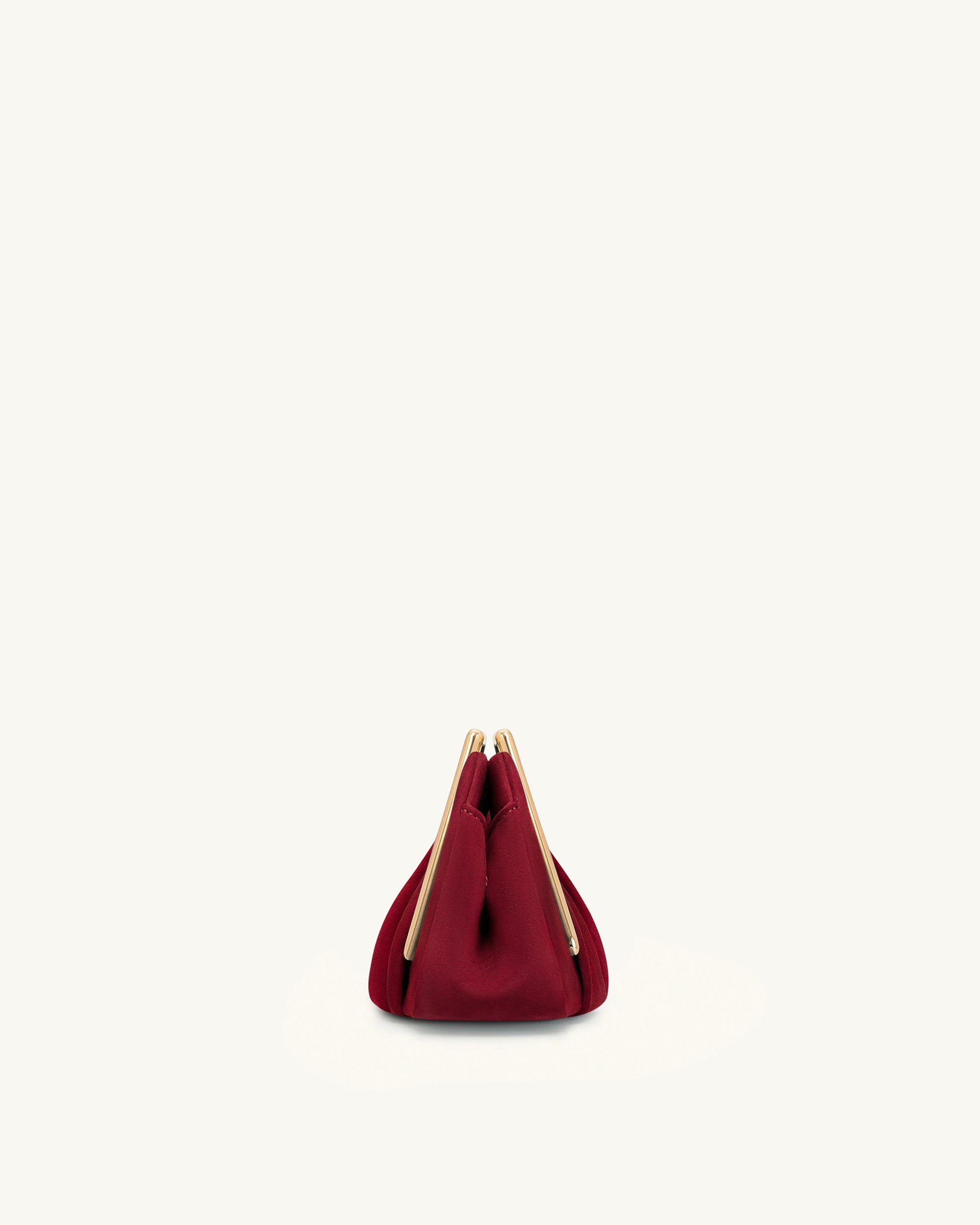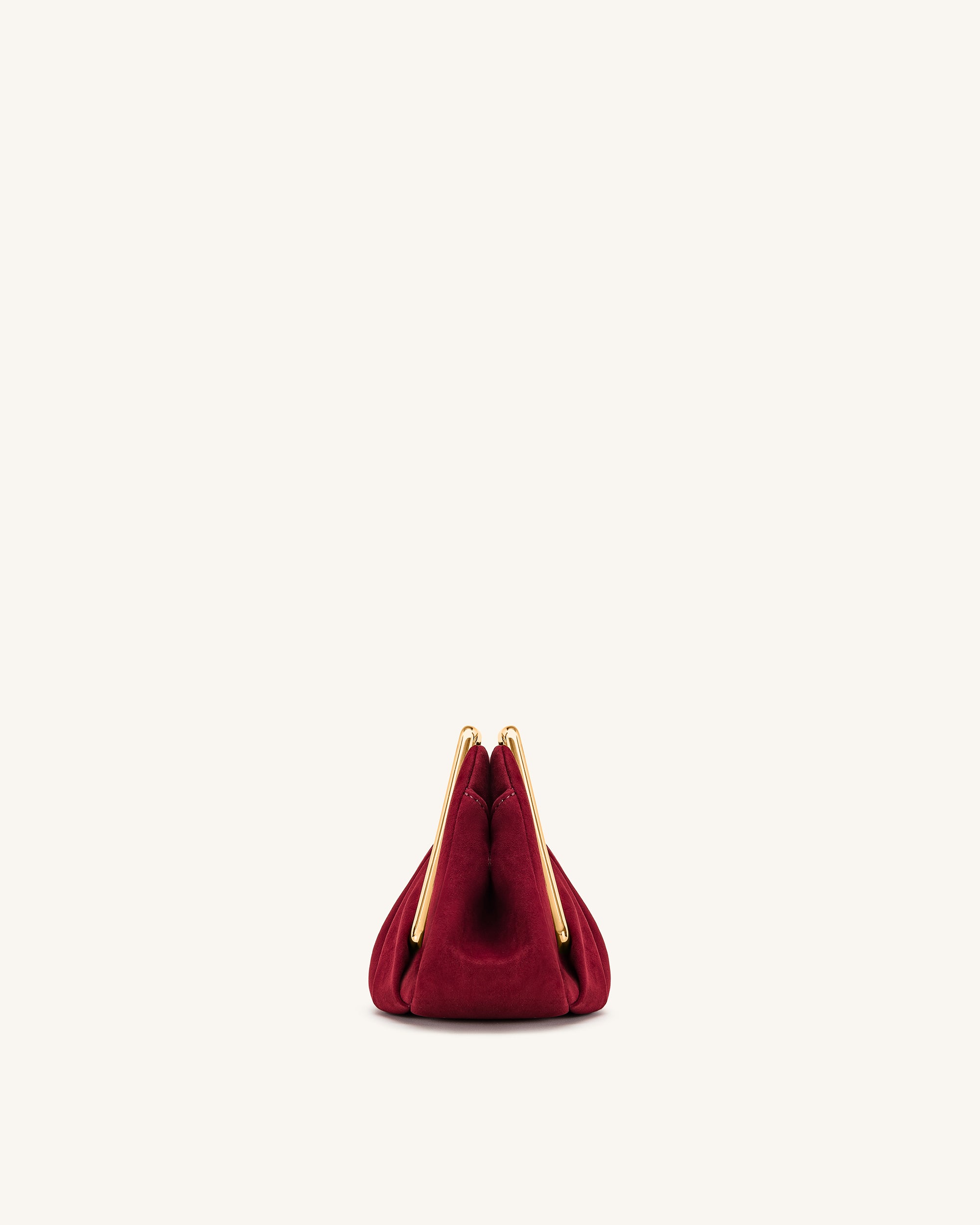 Lila 仿麂皮金屬框手拿包 - 紅色
