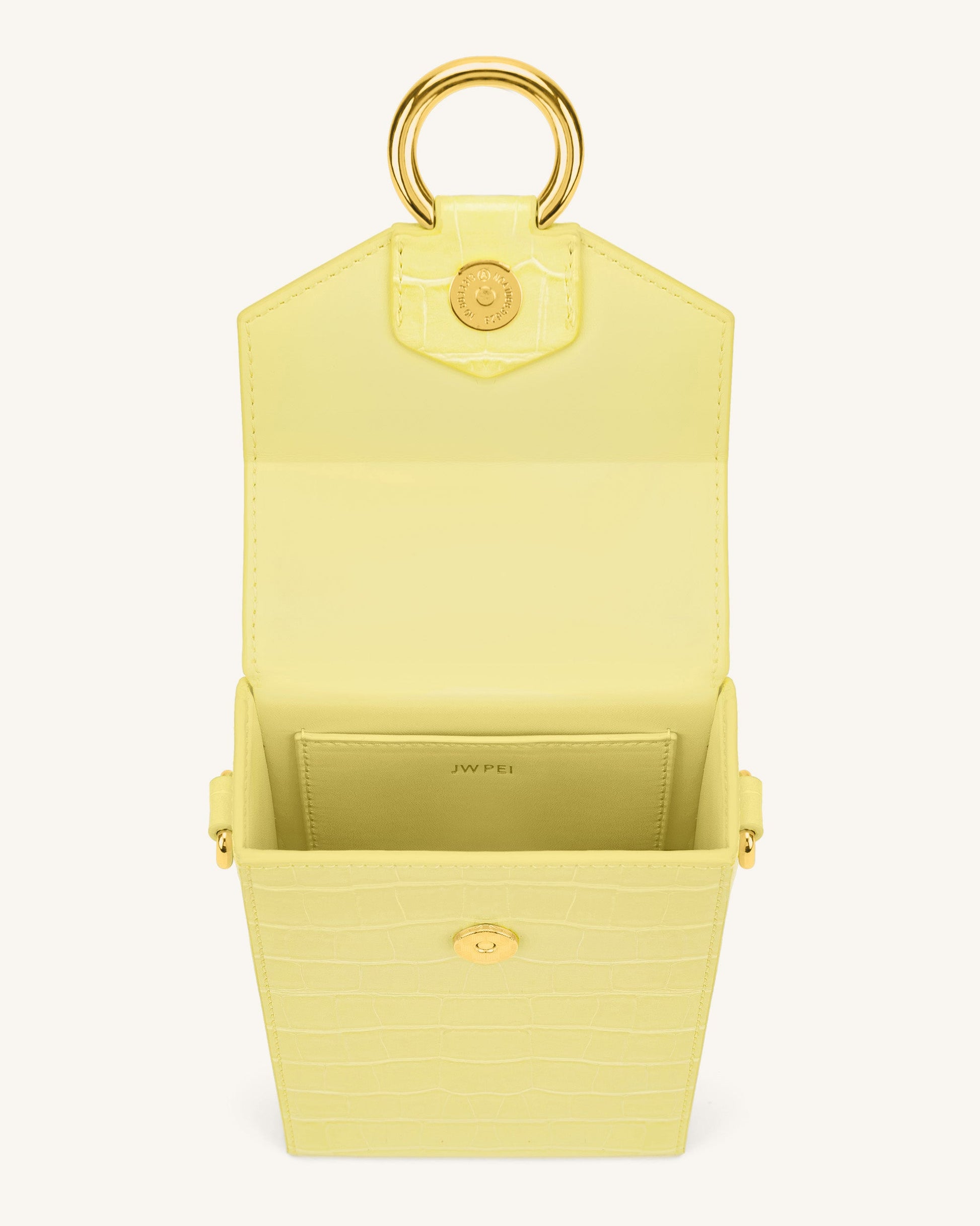 Lola 鏈條手機包 - 淺黃色鱷魚紋