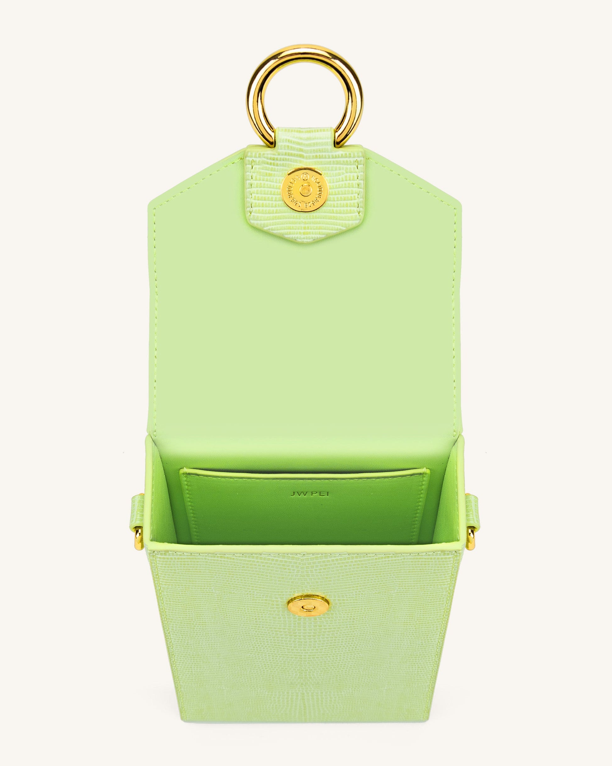 Lola 鏈條手機包 - 檸檬綠色蜥蜴紋