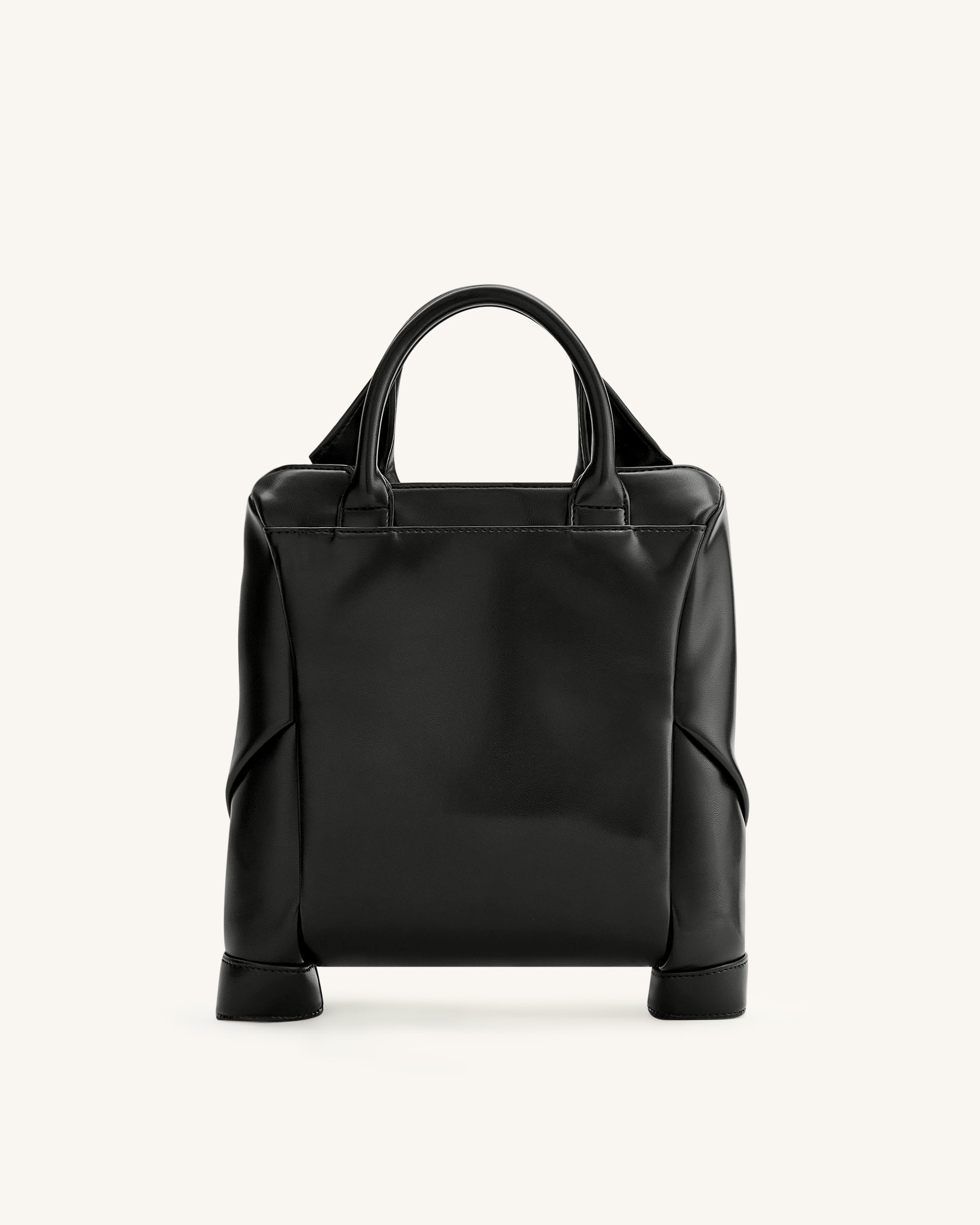 這款包以俐落的黑色外觀呈現,靈感來自經典機車外套輪廓,設計包括金屬拉鍊、立體翻領與正面翻蓋口袋。整體展現大膽前衛風格,既實用又充滿趣味,適合喜愛獨特街頭時尚的你。