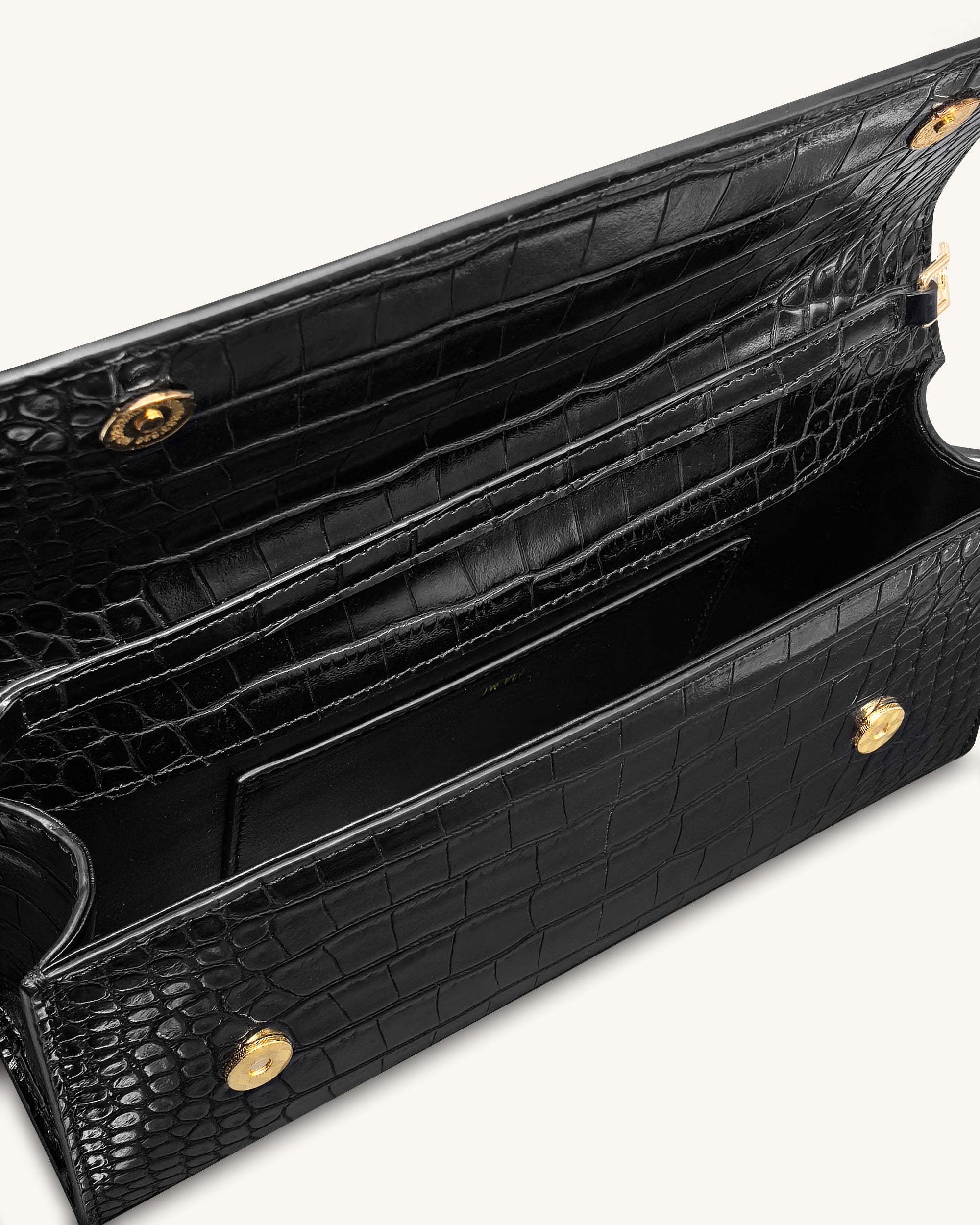 Maya 豹形五金提把手提包 - 黑色鱷魚紋