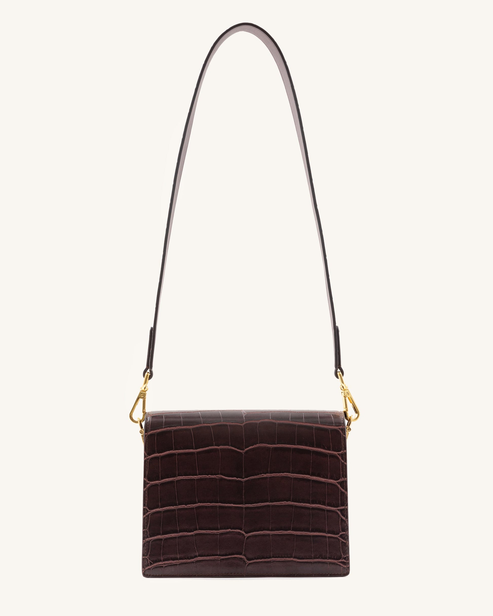 Mini Flap 迷你翻蓋包 - 棕色鱷魚紋