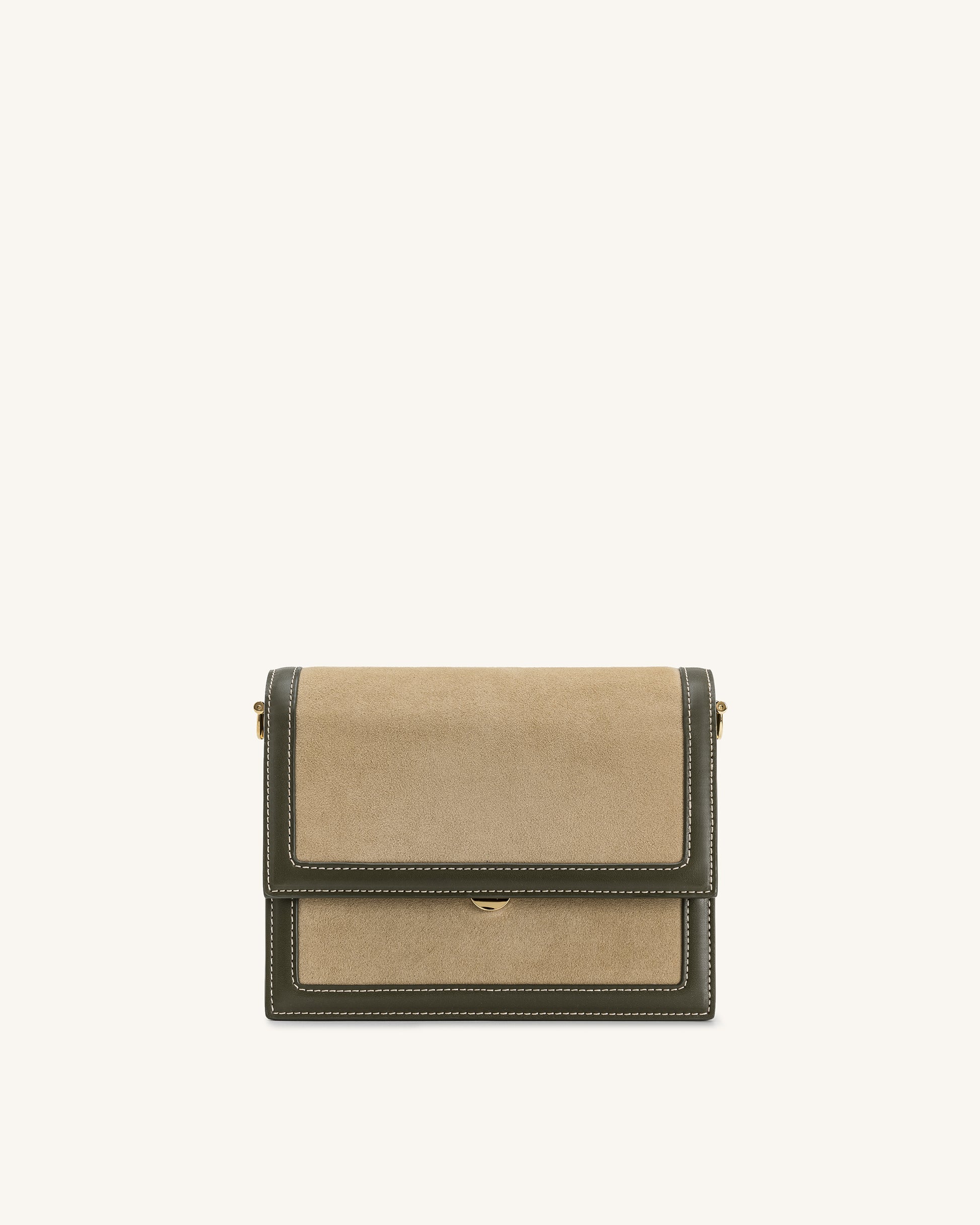 迷你翻蓋仿麂皮斜背包 - 綠色