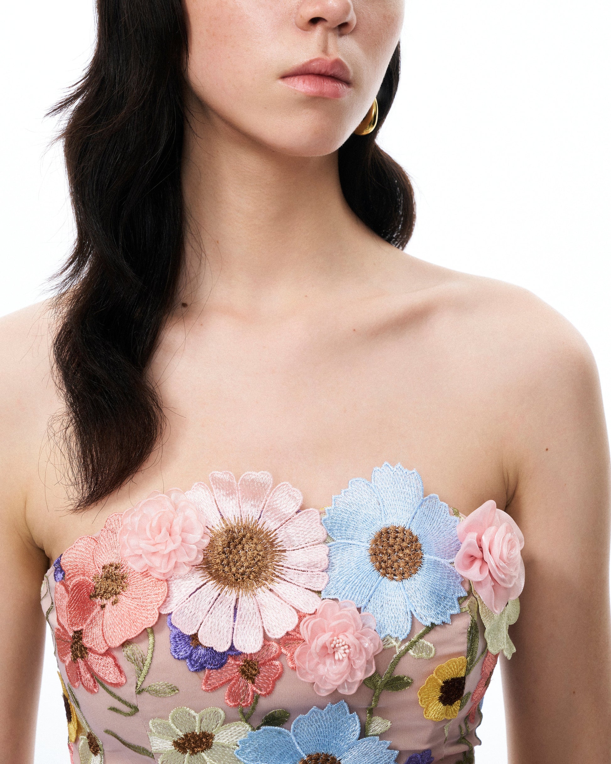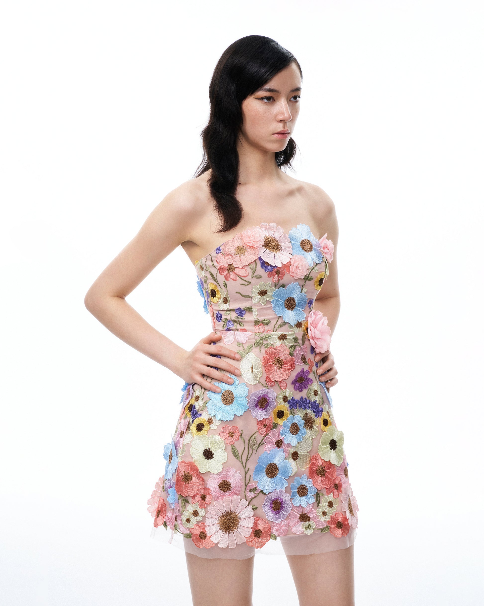 Odalys 花卉刺繡迷你洋裝-粉彩多色