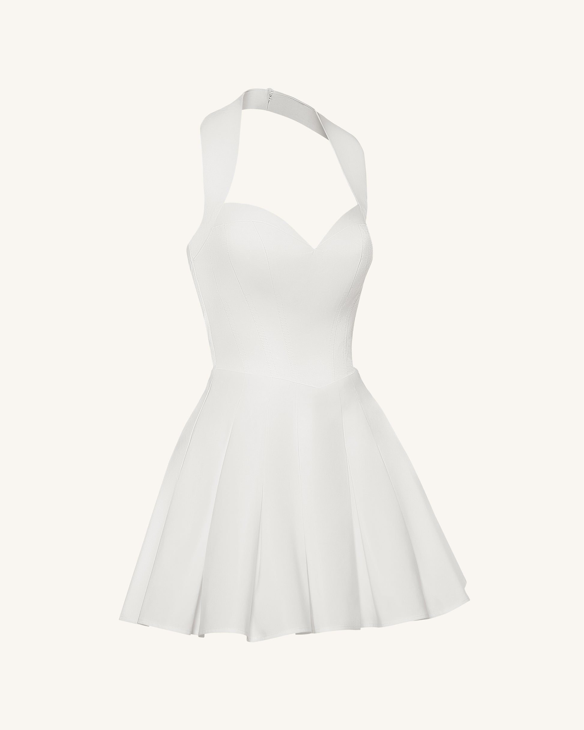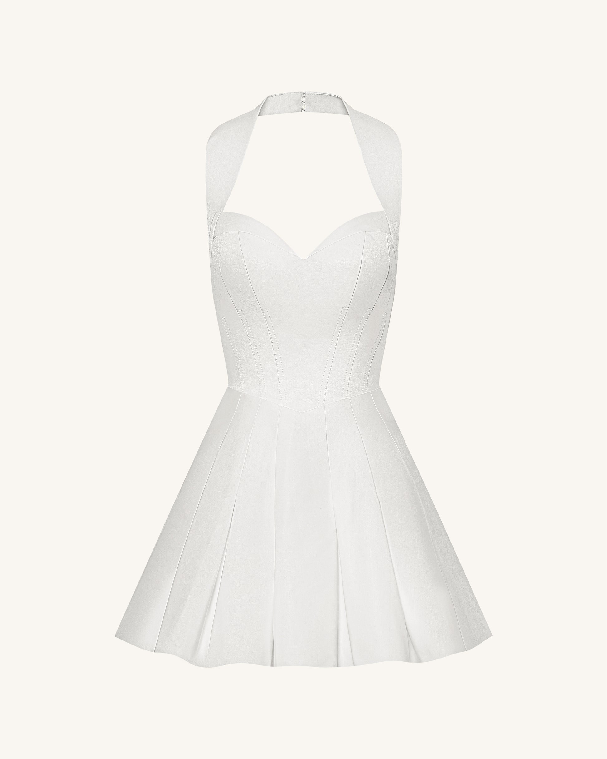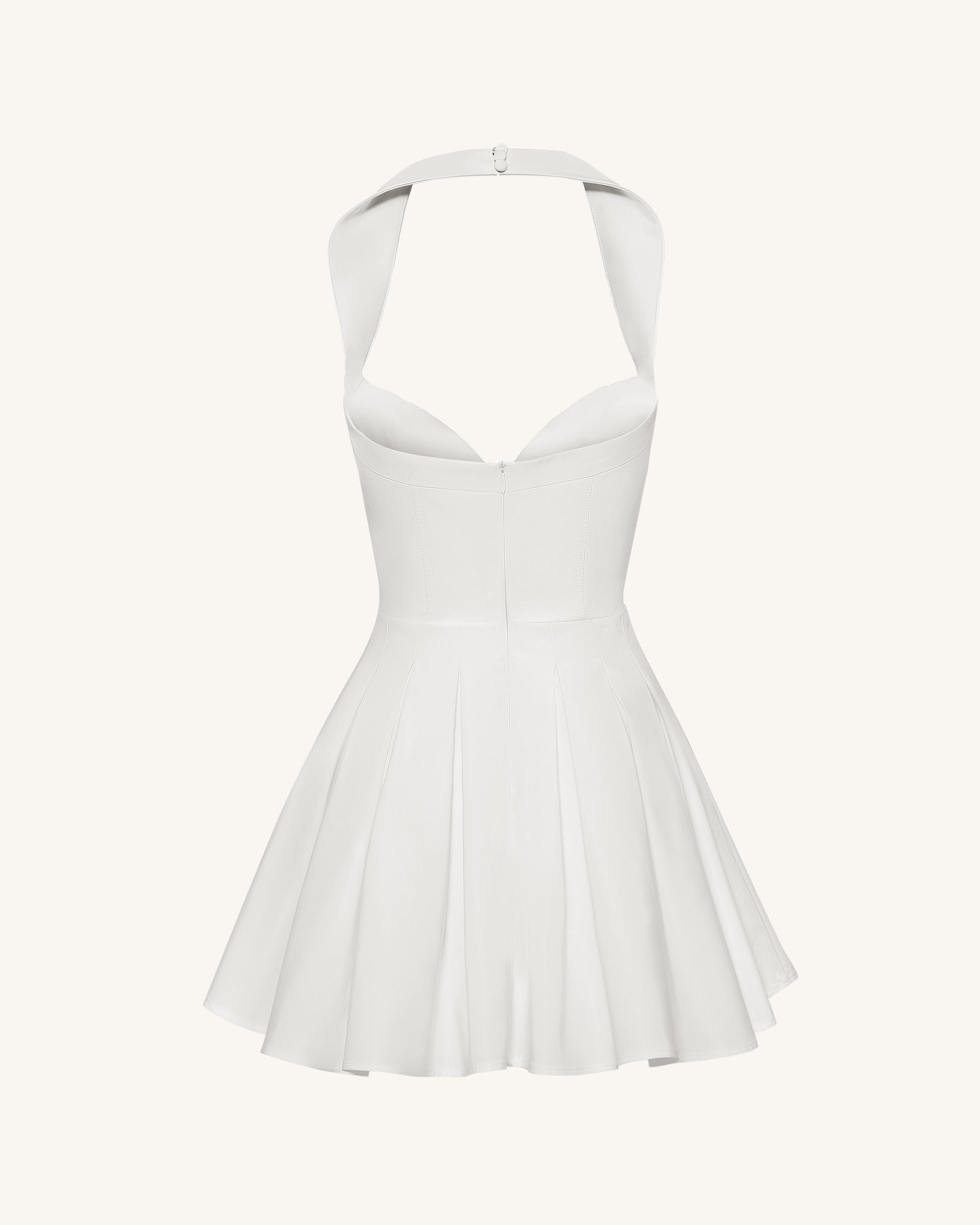 褶皺馬甲式繞頸迷你洋裝 - 白色