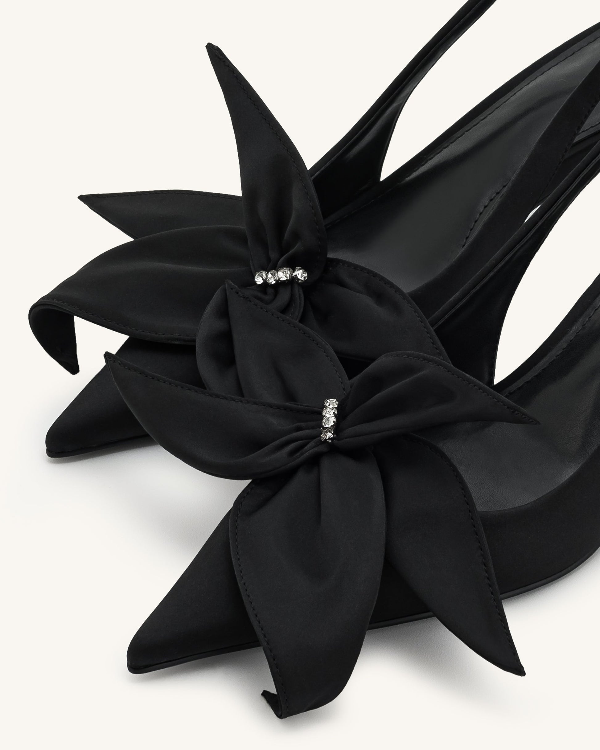Queena 花卉貼花露跟高跟鞋 - 黑色