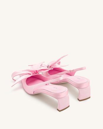 Queena 花卉貼花露跟高跟鞋 - 粉色
