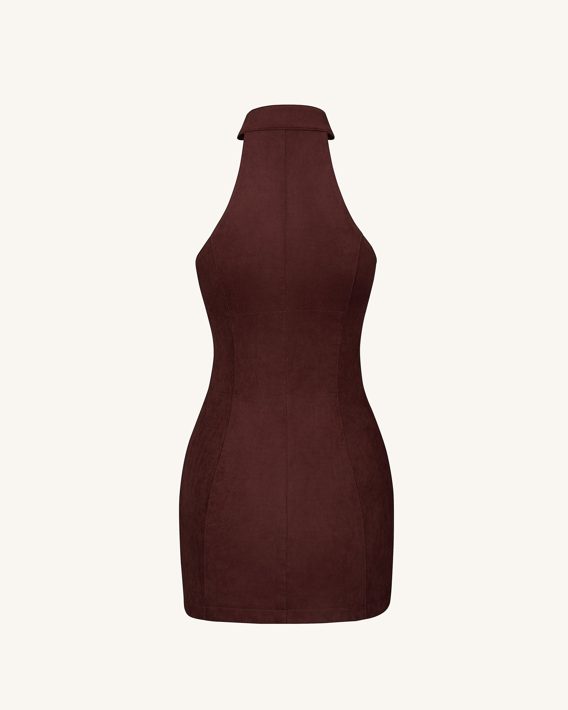 Ruby 吊帶拉鍊迷你裙 - 咖啡紅