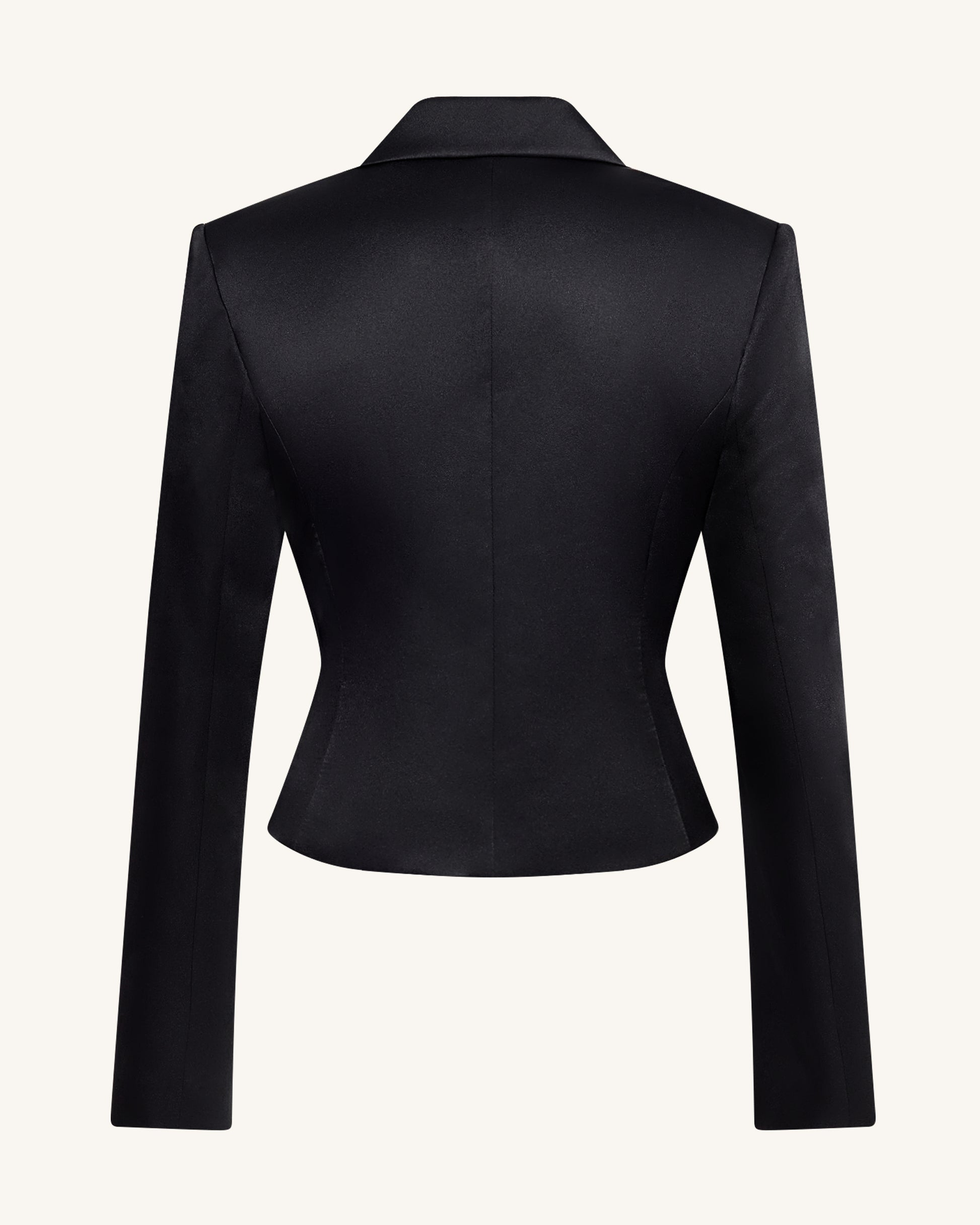 緞面修身短版西裝外套 – 黑色