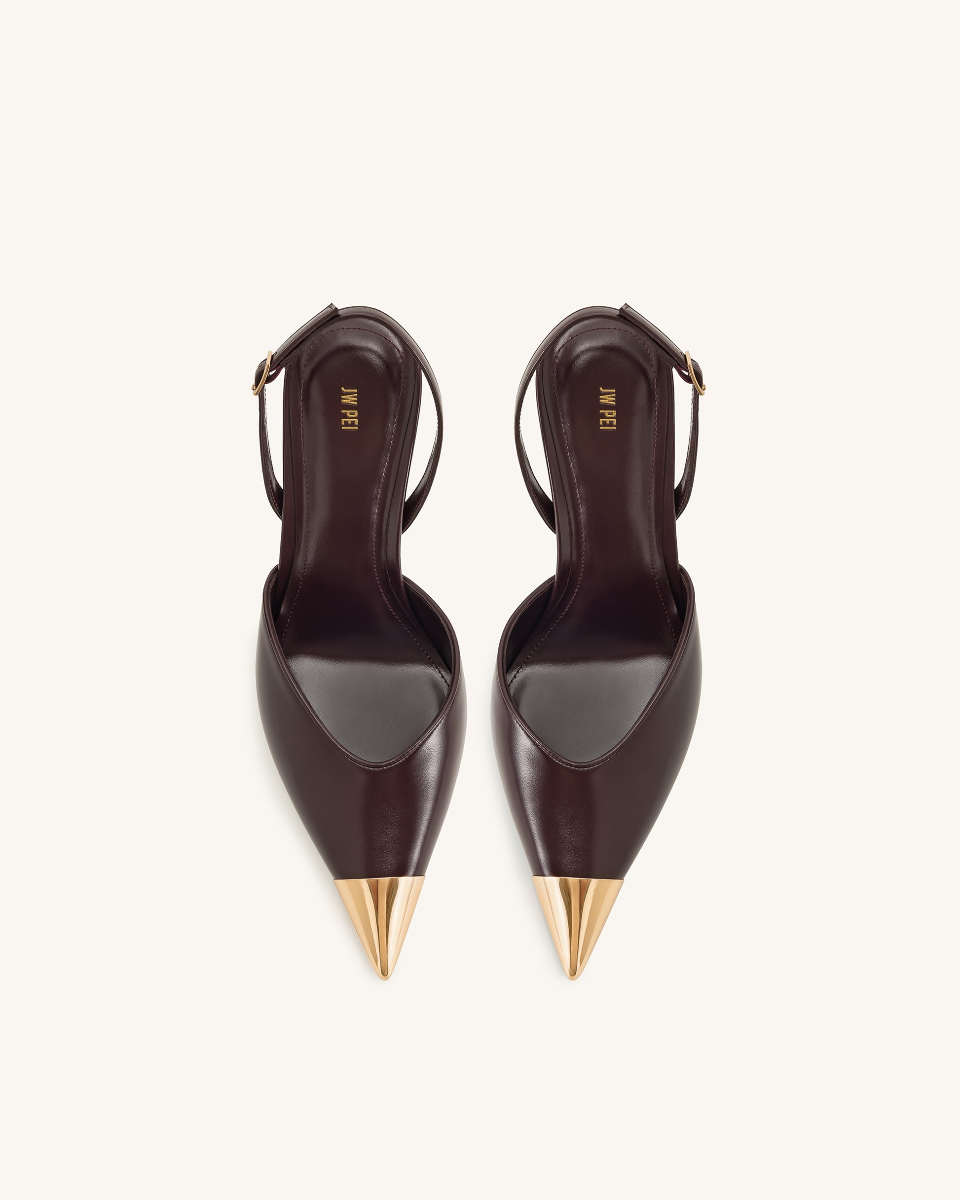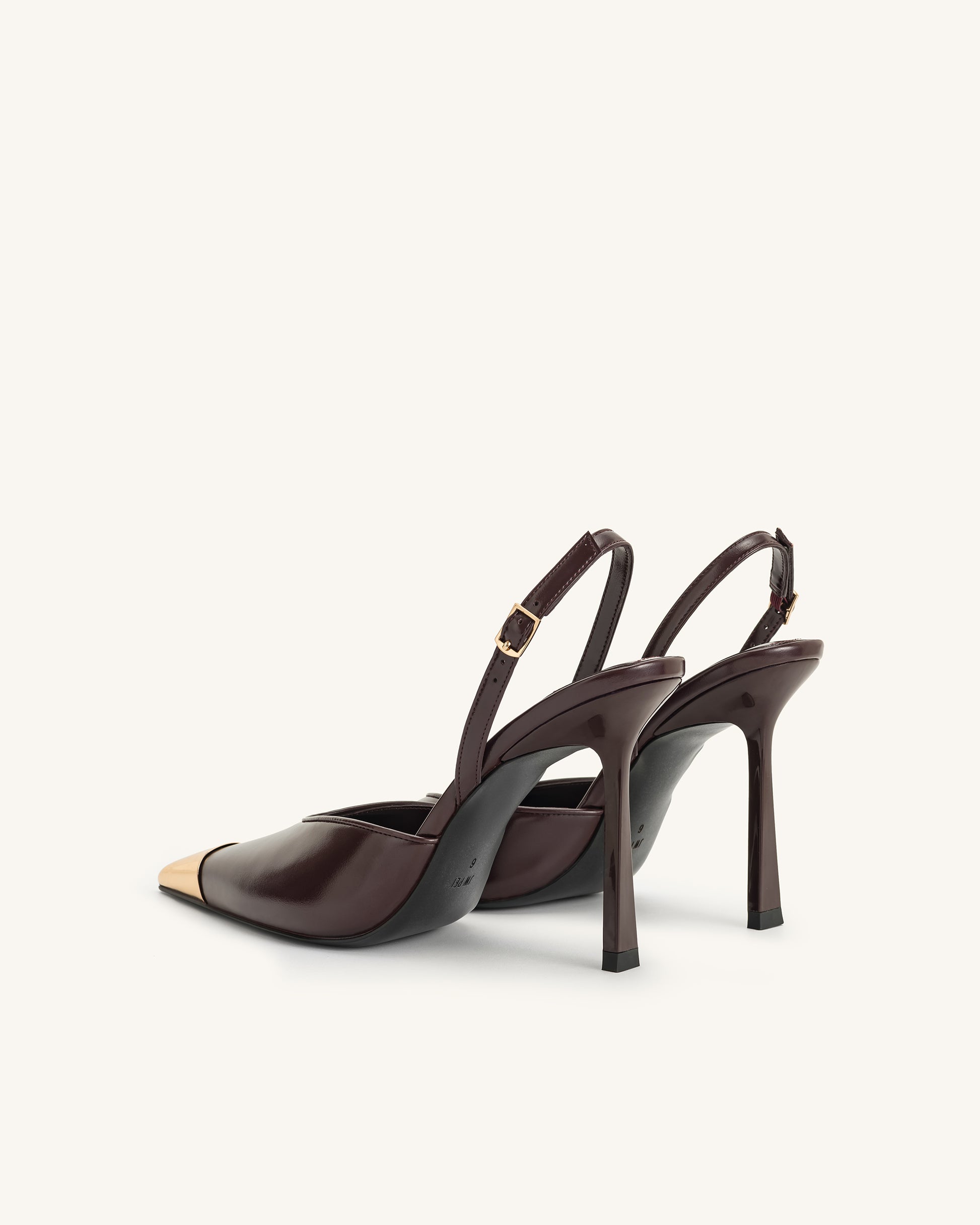 Savannah 金邊後踝高跟鞋 - 酒紅色