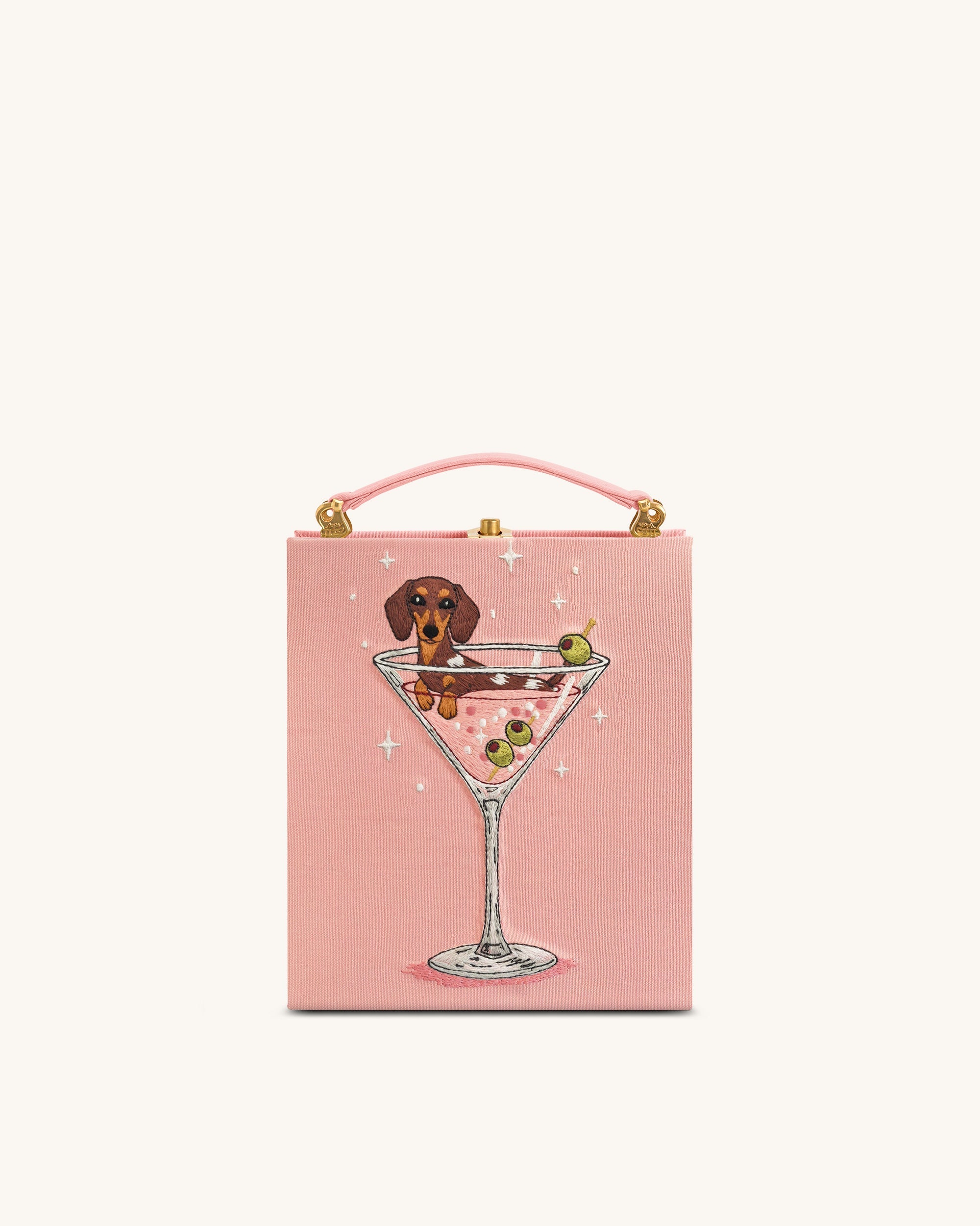 Taya 葡萄酒杯小狗圖案書本造型手拿包 - 粉紅色