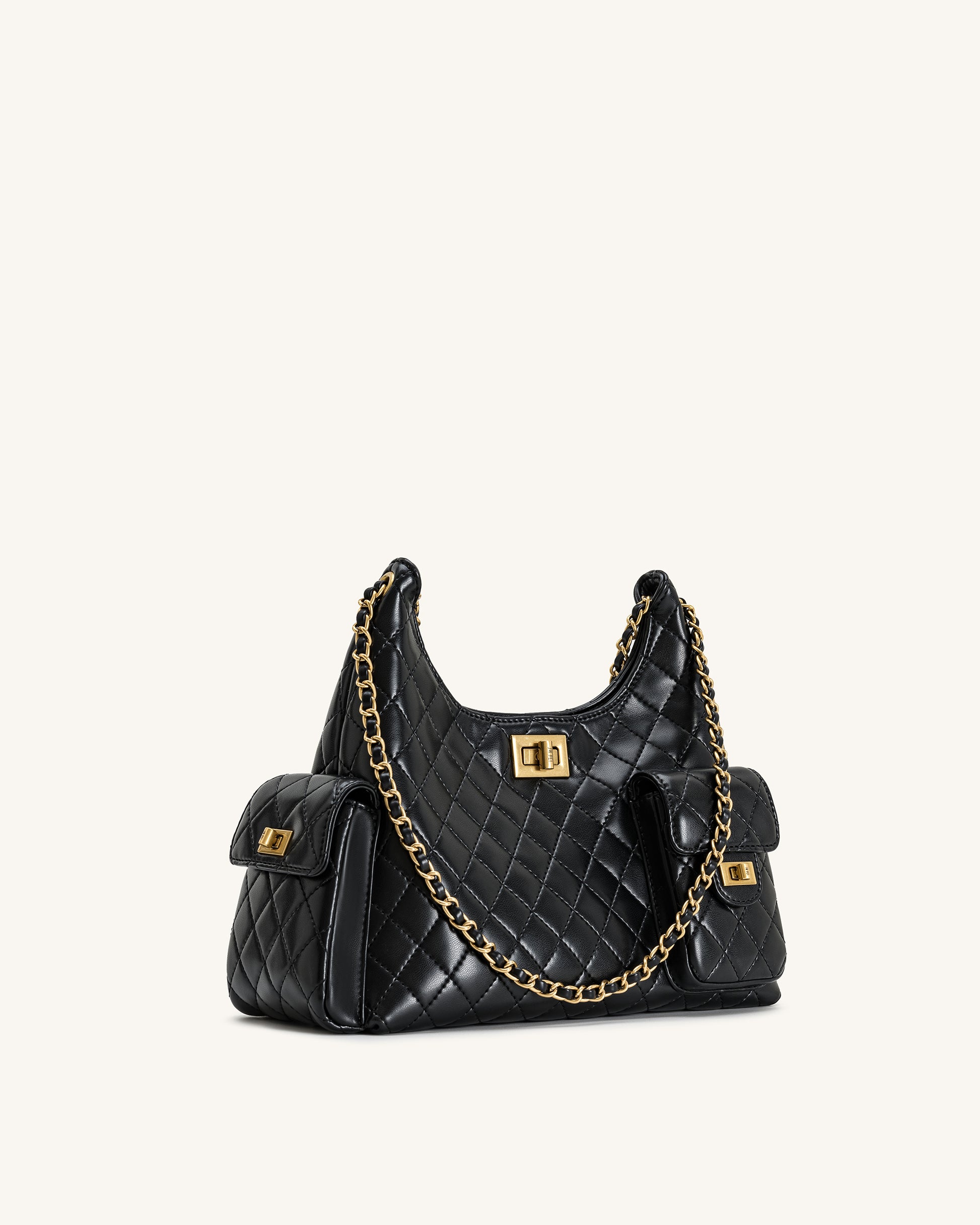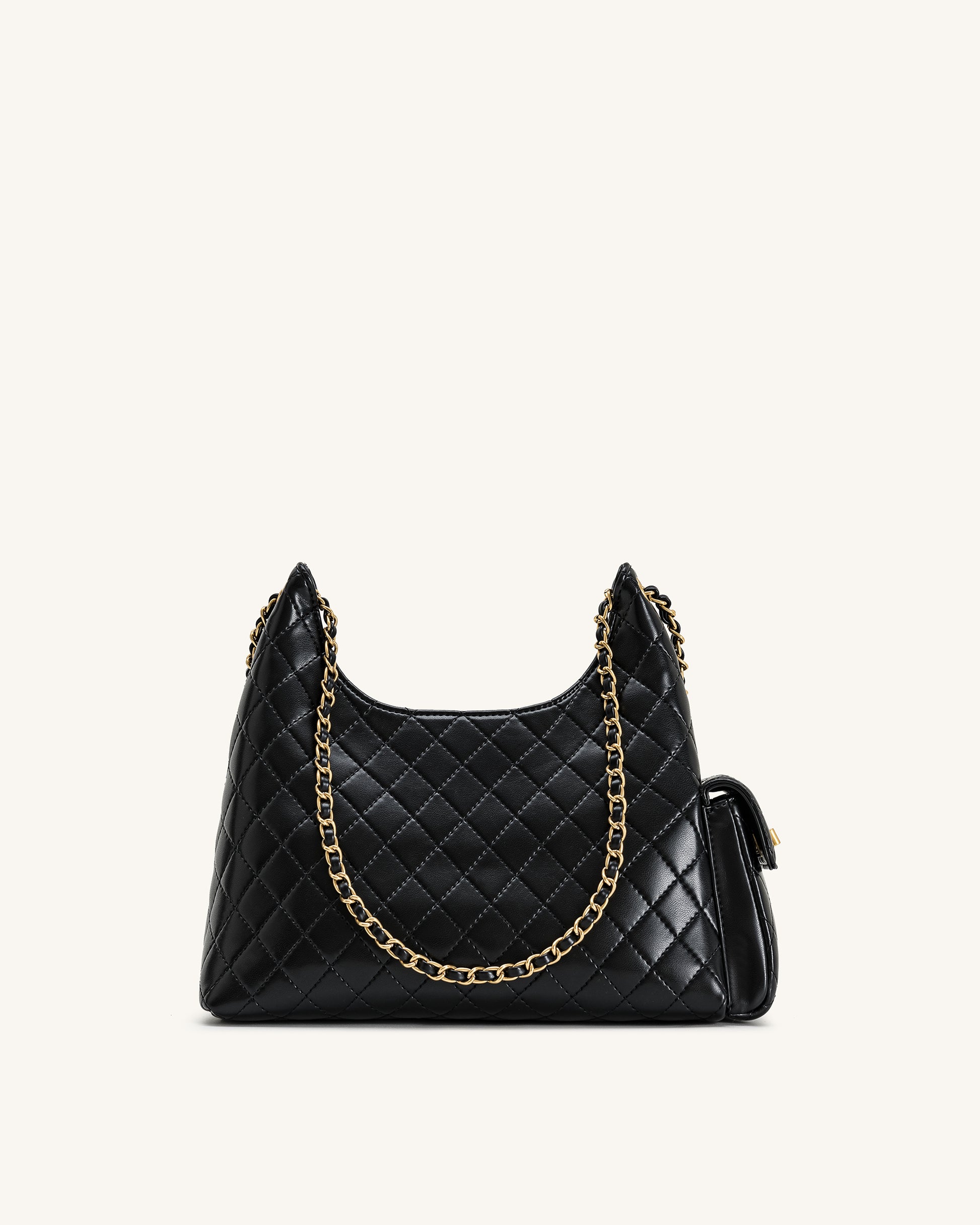 Vivian 菱格紋鏈帶肩背包 - 黑色