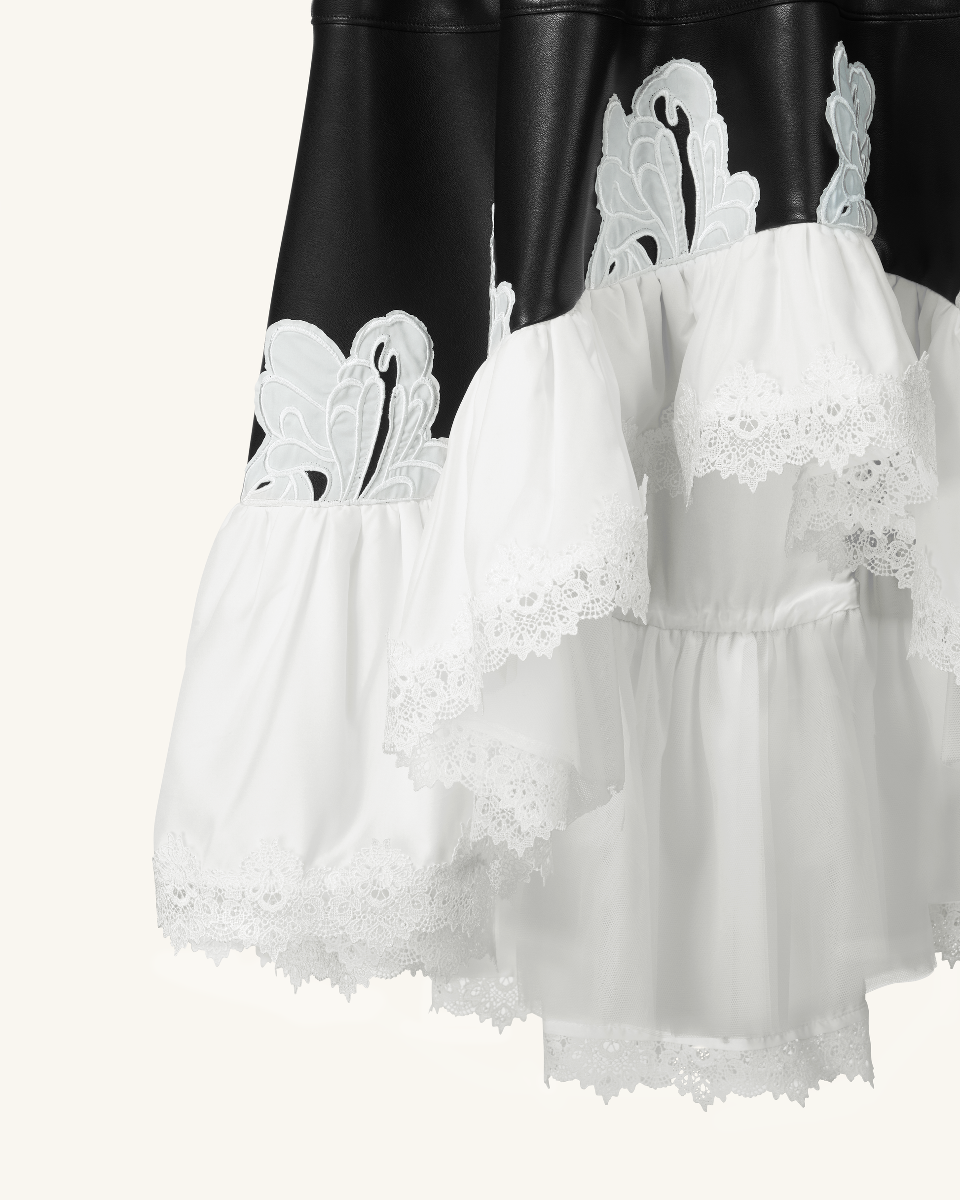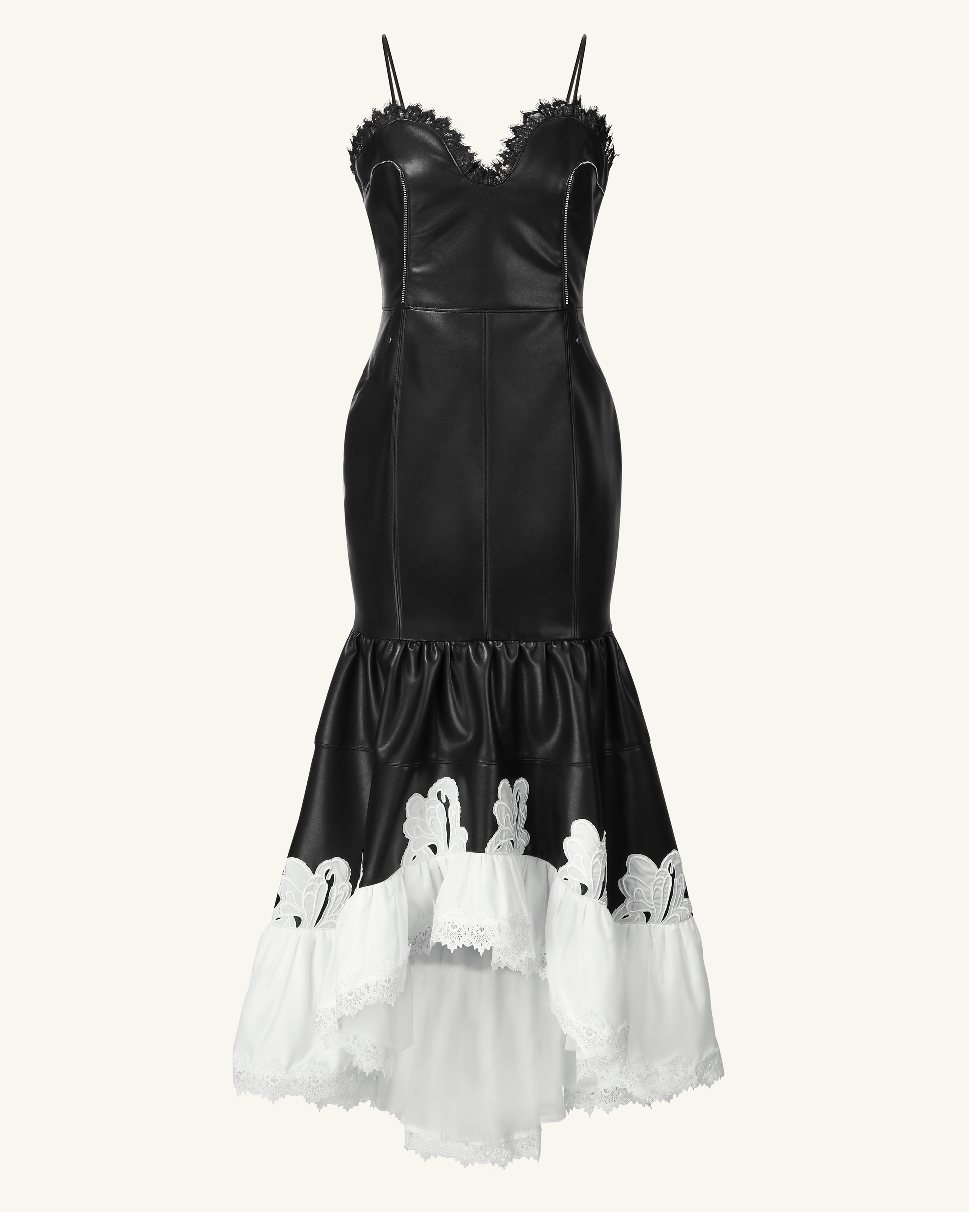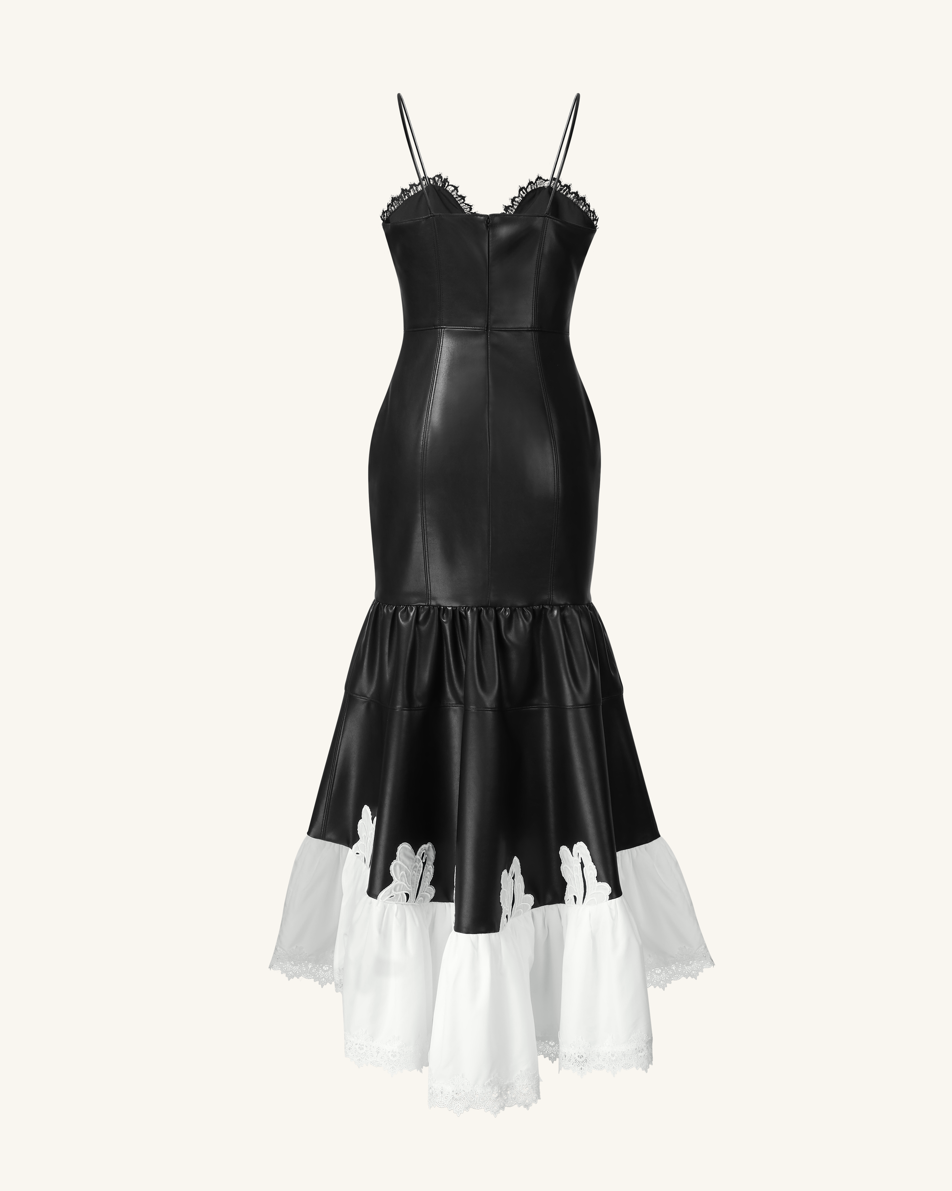 Zora 蕾絲邊皮革洋裝 - 黑色